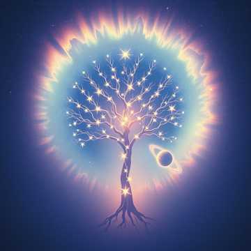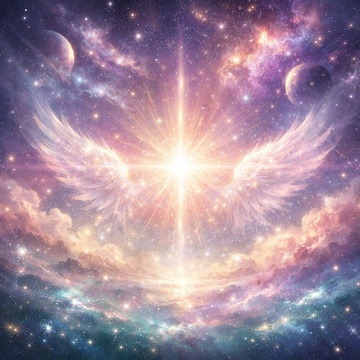 Prompt: “Warm cosmic ambient, choir representing galactic love, Gentle swells, sacred, uplifting, ”
