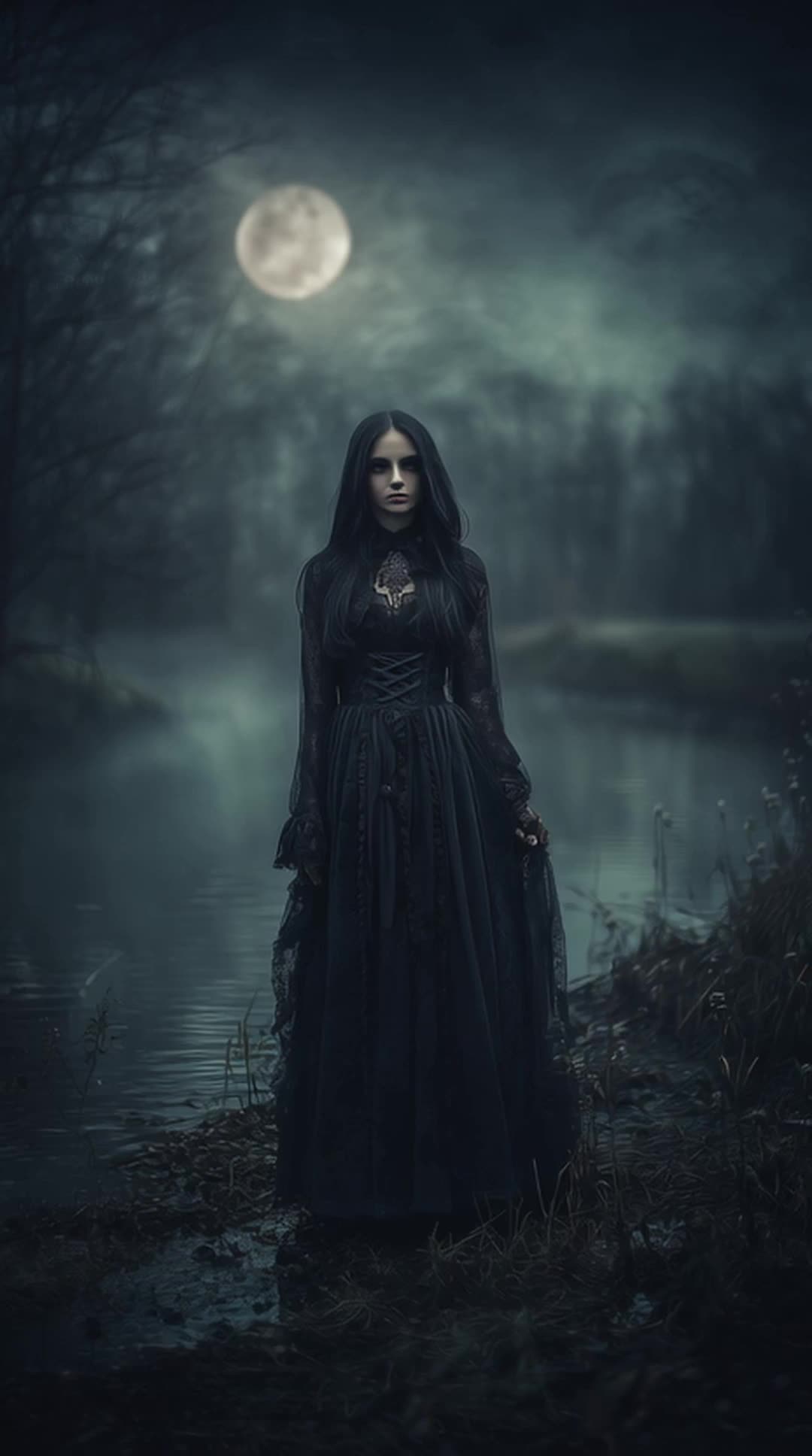 Dark, atmospheric Gothic Rock driven by female vocals, Electric guitars weave reverb-drenched arpeggios and piercing leads over a steady drum groove, Layered synth pads and spooky effects punctuate the texture, enhancing the brooding, haunted ambience throughout