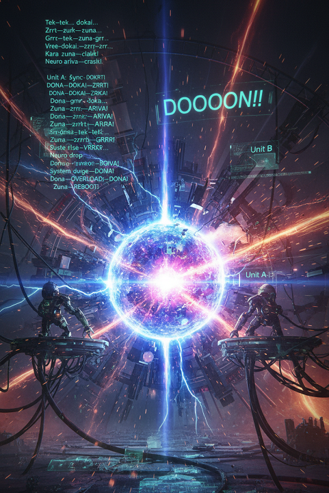 Drum and Bass, Neurofunk, 170 BPM, growl bass, metallic textures, cybernetic ritual atmosphere, Lunari language vocals, glitch accents, robotic call and response, dark futuristic mood, aggressive bass modulation, sharp transients, minimal melody, wide stereo imaging, โlow, โmechanical