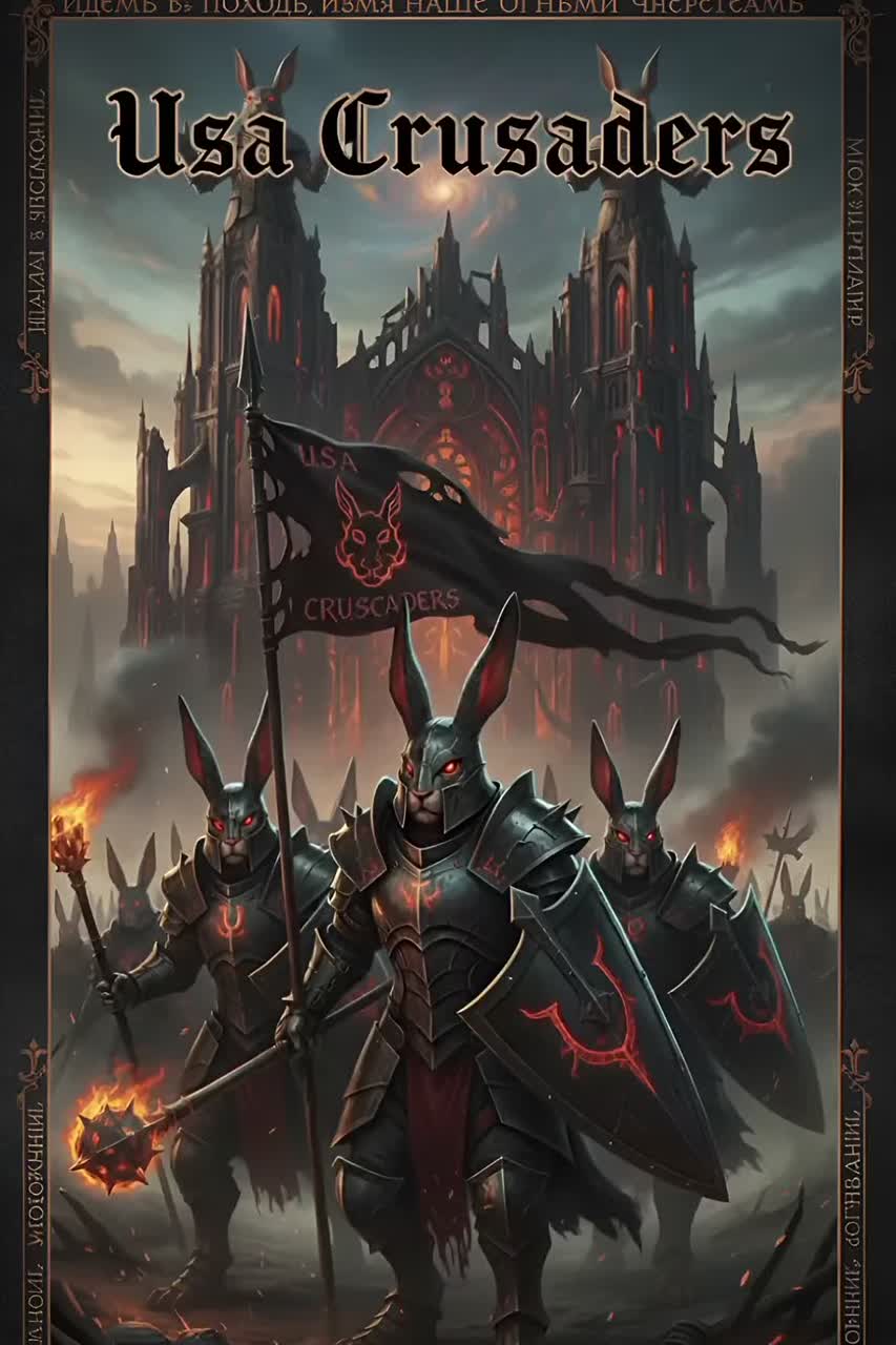 Slavic ritual metal, ancient chant influence, deep male vocals, dark cathedral atmosphere, heavy thrash guitars, doubleโbass drumming, epic warlike tone, mystical liturgical resonance, powerful shouts of "Usa! Usa! Usa!"