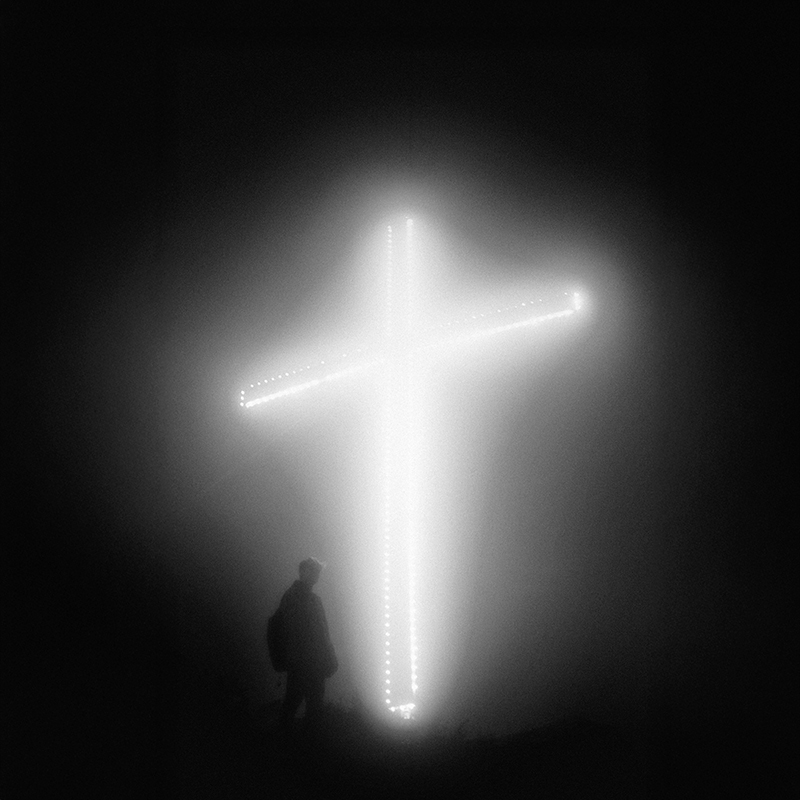 Anthemic contemporary Christian worship song featuring a powerful male tenor lead, The track opens with a clean, atmospheric electric guitar melody using delay and reverb, accompanied by light acoustic guitar strumming, The arrangement builds into a full-band sound with driving drums, a prominent bassline, and layered electric guitars providing a thick, distorted texture in the choruses, The song follows a Verse-Chorus-Verse-Chorus-Bridge-Chorus structure, The vocals are emotive and soaring, supported by a large choir-style vocal stack in the climactic sections, The production is polished with a wide stereo field, shimmering synth pads for atmosphere, and a high-energy, triumphant feel, The tempo is a steady mid-tempo 4/4 beat, characterized by a celebratory and reverent mood