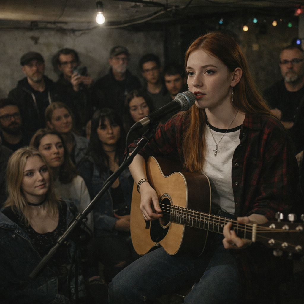 Opens with a close-miked, spoken radio interview in a candid, ambient setting—purely voice and subtle background noise, As the segment ends, faint room sounds blend into a raw, unplugged feel, Verses bring dynamic, syncopated pop punk fingerpicked acoustic guitar, hooky and energized with no percussion, maintaining intimacy and drive