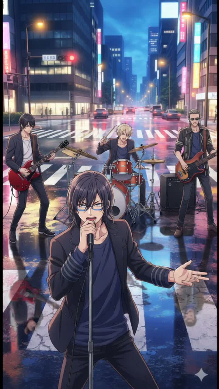 Instrumentation Style: Raw grunge rock foundation with distorted guitars and heavy drums, fused with J-POP melodic catchiness and UK Garage-inspired shifting rhythms, The band should create an aggressive yet danceable tension, but always leave space for the vocal to dominate, Film Score