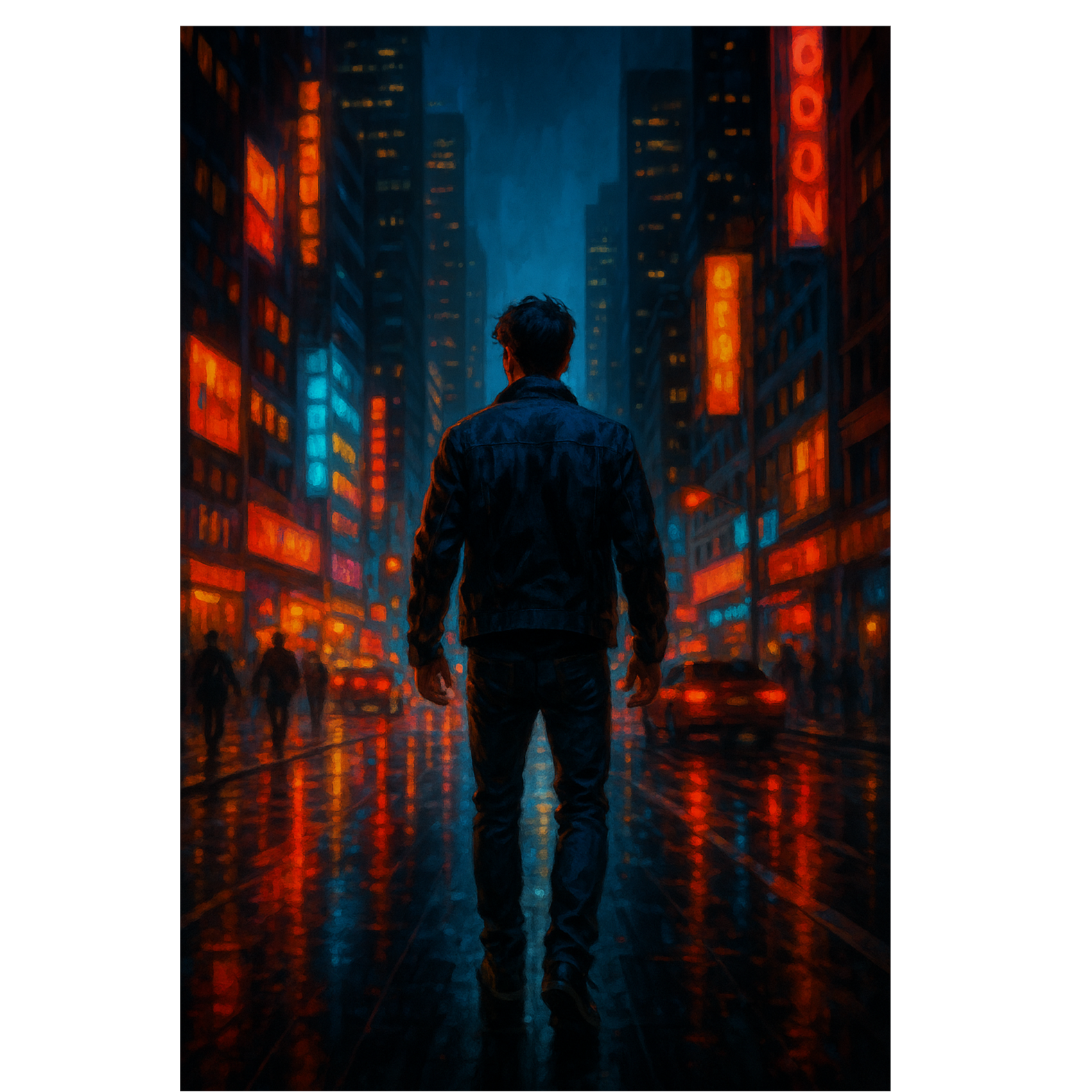 Create a modern American pop-rock track with urban hip-hop influences, Style: pop rock, alternative rock, hip hop fusion, Mood: energetic, cinematic, urban, like running through a neon-lit city at night, Instruments: electric guitars with rhythmic riffs, deep bass, punchy rock drums mixed with trap-style hi-hats, atmospheric synths, piano chords, and subtle electronic effects, Vocals: male lead, powerful and emotional with a slightly rough tone; optional rap-style delivery in verses and soaring melodic choruses, Verses should feel intense and rhythmic, choruses anthemic and explosive, with layered harmonies, Atmosphere: New York or Los Angeles city streets at night, neon lights, skyscrapers, chaos and freedom, Lyrics in English about being “lost in the city lights, ” chasing dreams, surviving chaos, and finding yourself among shadows, Key hook line: “Lost in the city lights, running through the sleepless nights, ” Overall sound: epic, cinematic, blending urban grit with stadium-ready roc