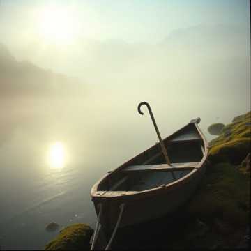 Slow haunted river-ballad, harp, fiddle harmonics, water ambience, deep drone, echoing chant, mourning and menace blended