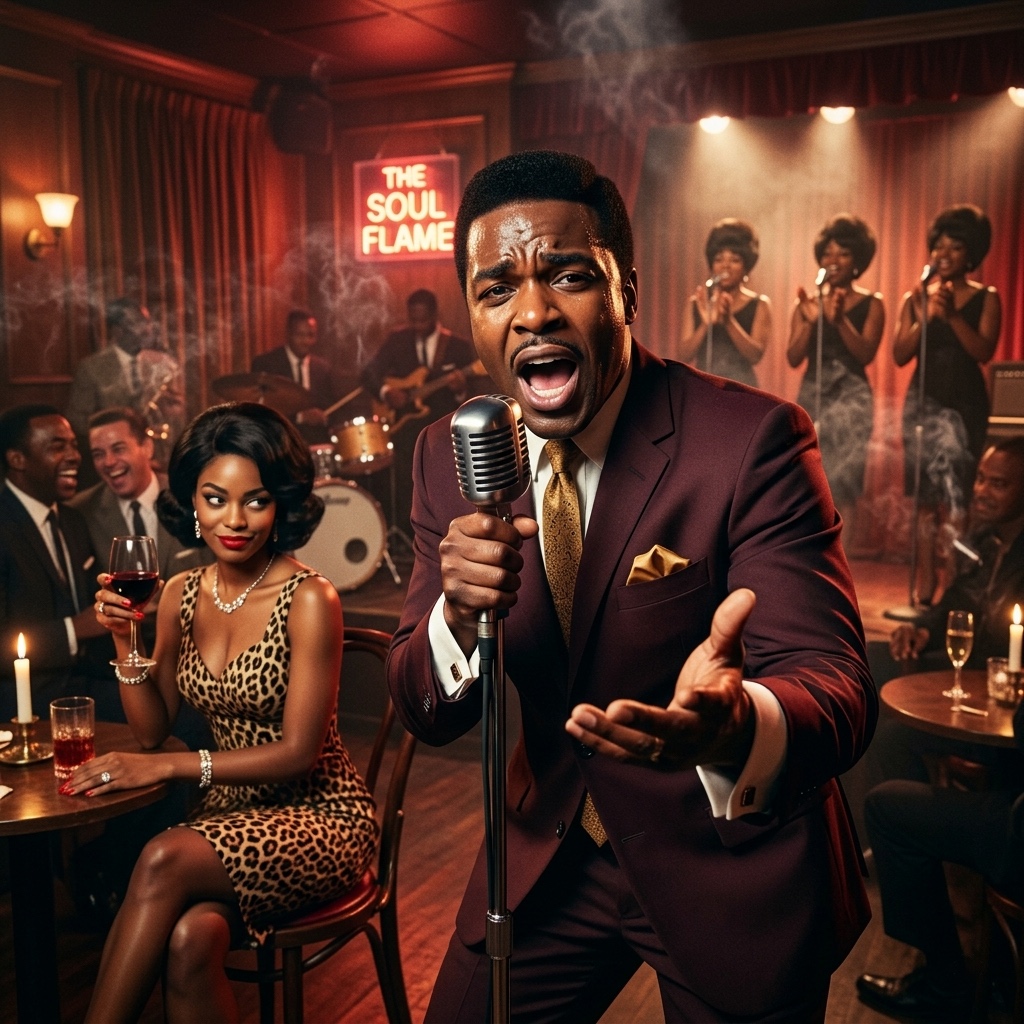 1960s soul and R&B with a big brassy horn section, tight rhythm guitar, walking bass, and energetic drums, Bright, danceable groove with call-and-response horn stabs and swinging piano fills, Male lead vocal with soaring tenor range, dynamic leaps between smooth crooning and powerful belted high notes, playful spoken asides, and expressive falsetto flourishes, Performance is charismatic, romantic, and over-the-top, full of joy and swagger, like a show-stopping soul singer at the peak of his powers, Catchy, Memorable