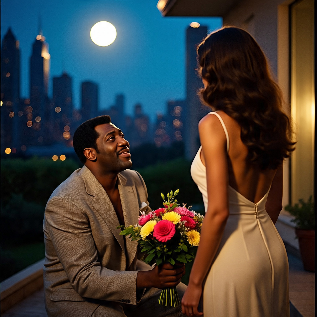 Smooth, very deep-voiced soul ballad in the style of 1970s soul, Deep baritone male vocals, Rich orchestral strings, funky bassline, wah-wah guitar, slow sensual groove with lush Rhodes electric piano, Romantic spoken intro leading into silky baritone singing, Warm disco-soul production, layered background harmonies, dramatic swells, playful and affectionate tone but delivered with passionate sincerity