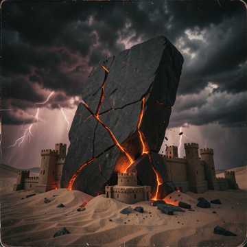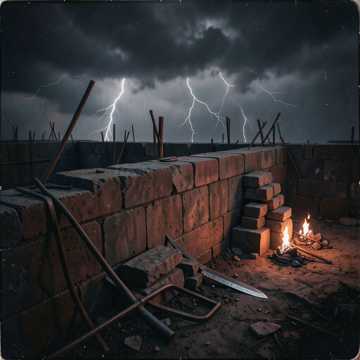 prumo divino descendo sem misericórdia sobre ruínas. A postura da verdadeira Igreja: a espada letal em uma mão para combater e a argamassa bruta na outra para reerguer os Muros.
