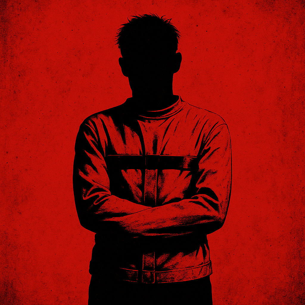 Heavy metal with thrash influence, slow to midtempo pacing with a driving, grounded groove, Dense palm-muted distorted rhythm guitars form the core, with occasional open chord accents and layered harmonic weight, Tight, punchy acoustic drums lock into a steady groove, supported by a deep, controlled bass presence that reinforces the low-end, The arrangement stays focused and riff-driven, with dynamic shifts between restrained and more forceful sections, The overall sound is dark, heavy, and polished, balancing clarity in the guitars with a thick, powerful mix