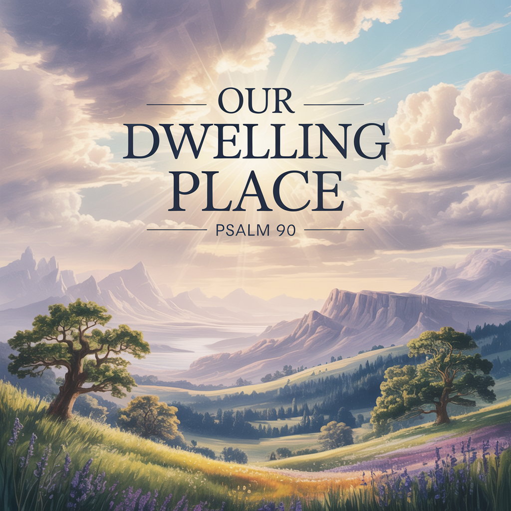 Hymn-like orchestral ballad with soft piano, warm string ensemble, and gentle acoustic bass, Slow tempo around 72 bpm, Rich vocal harmonies in places, but primarily a solo or duet with reverent tone, The atmosphere is reflective and eternal, like a peaceful sanctuary hymn at dusk, Build gradually through the final chorus with full strings and light cymbal swells, then resolve to a quiet, sustained piano chord, Mood: timeless, reverent, comforting — resting in the eternal home of God