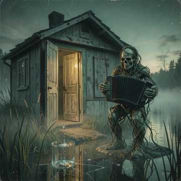 Aggressive Finland Metal-Punk-Waltz, 3/4 time signature, distorted dirty accordion, high-energy gruge-folk-punk, chaos canbaret fusion, driving distorted bass, chaotic brass section, satirical surzhyk male vocals and female alcoholic backing, theatrical backing vocals, Finnish Serduchka style interludes, sudden tempo shifts, sound effects, cynical atmosphere, ‑asia, ‑india, ‑arabic, ‑islamic