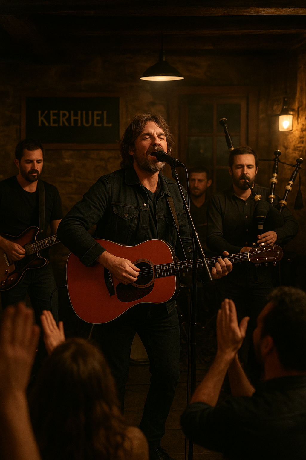 A Breton folk-rock ballad in G major opens with a Celtic pipe motif, glockenspiel, and jingle bells, Verses blend gritty acoustic strums and pipes; pre-chorus builds with dynamic drums and more bells, Choruses burst with full band, jangly guitars, lush backing vocals, and bells, The interlude highlights Celtic flute atop rolling drums, Bridge weaves pipes, acoustic arpeggios, and delicate bells, Instrumental breaks alternate electric riffs and lively pipes with bell accents, Outro gently fades on pipes, soft electric tones, bells, and sea ambiance