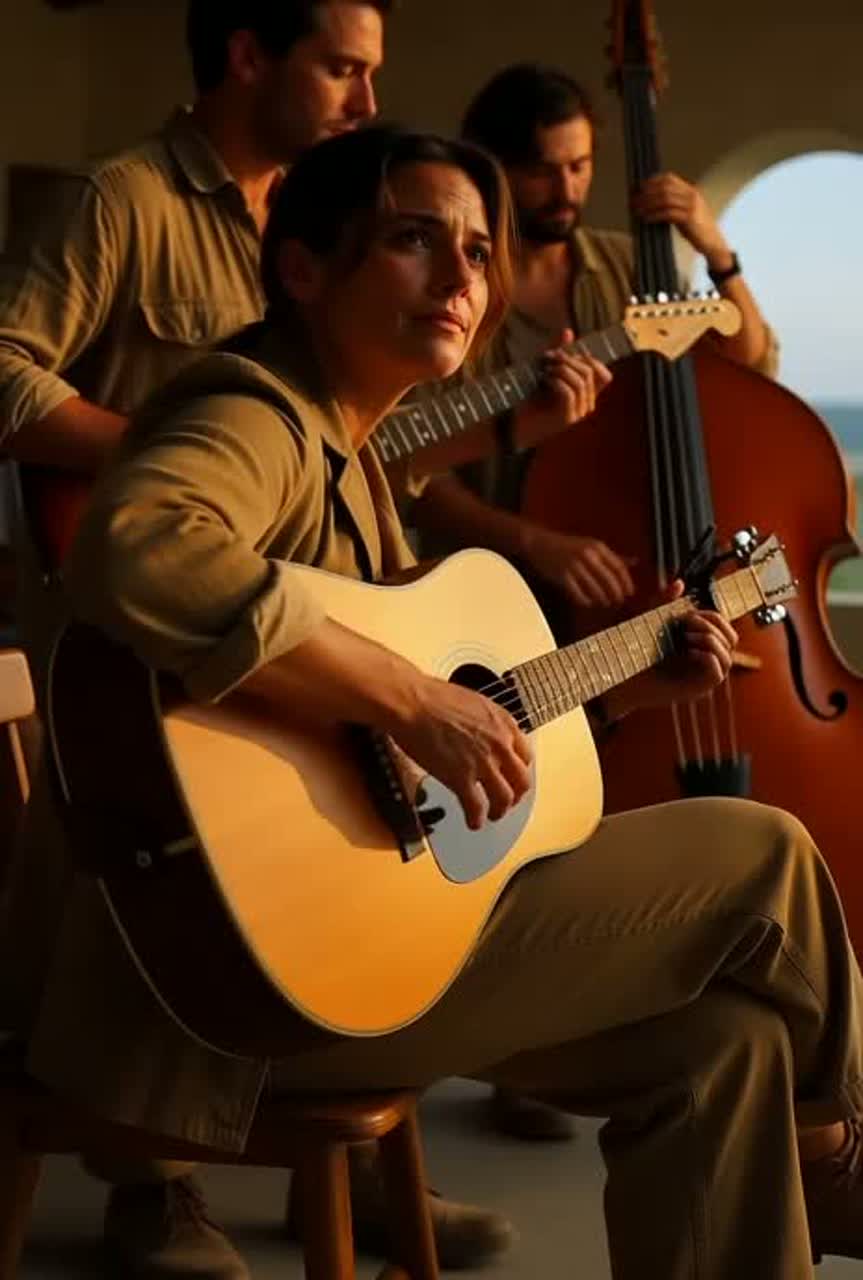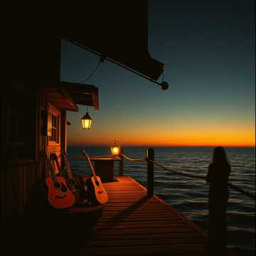 This French folk-rock Christmas song opens with fingerpicked acoustic guitars and ambient marine sounds, joined by brushed mid-slow drums and warm, round bass, Soft electric guitar layers and subtle bells add dimension, Verses are intimate and whispered, pre-choruses gently rise, while uplifting choruses expand with layered textures and star-like chime motifs, Instrumental breaks highlight coastal atmospheres and vintage-tinged warmth, maintaining organic band interplay and a softly festive, maritime spirit throughout