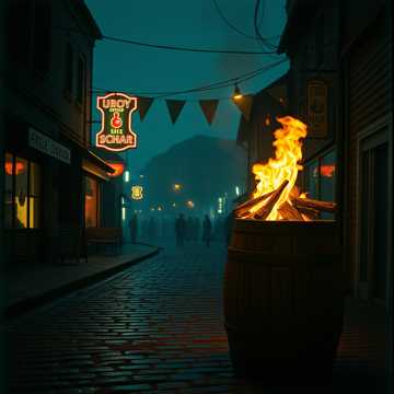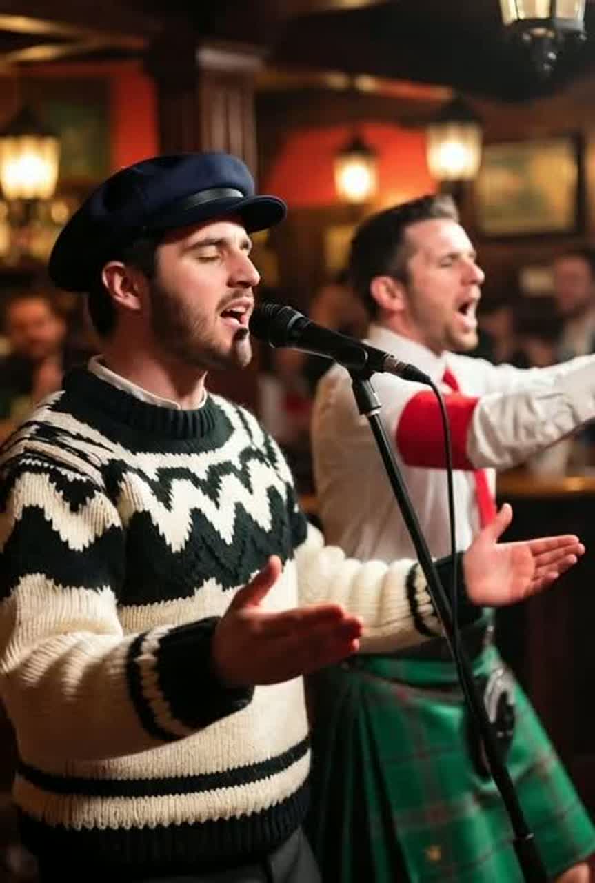 Acoustic guitar accents and tight drums set an energetic pulse, with bass and electric guitar fills layering in, Bagpipes deliver the main melody, while a roaming fiddle adds movement beneath rhythmic, spoken-sung male verses, The pre-chorus brightens, driving into a rousing, accordion-anchored singalong chorus, An expressive accordion solo leads into a swinging, danceable verse, Later choruses build with gang vocals, vivid nautical flourishes, and robust instrumentation, The bridge strips back to voice, fiddle, and intricate fingerstyle guitar, before drums and the full band erupt into a lively, chant-filled finale evoking a celebratory pub atmosphere