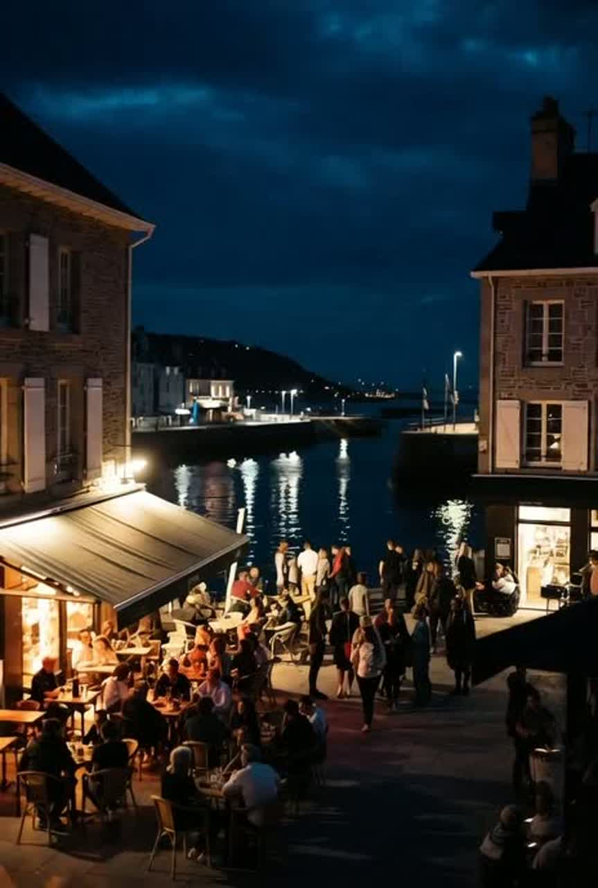Folk‑rock breton vibe, gritty acoustic guitars, warm analog sound, raw male vocals with a friendly roughness, Vocal range and intonations typical of a singer with a Breton accent, streetwise storytelling, simple everyday language, playful and slightly mocking tone, mix of tenderness and irony, coastal night atmosphere, bar‑room energy, steady folk‑rock drums, lively bass lines, organic instruments, upbeat yet nostalgic mood, narrative flow with small‑town authenticity, dynamic choruses, intimate verses, live‑band feel