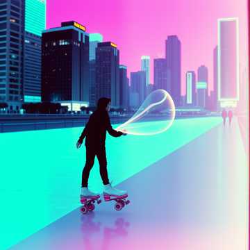 Distorted guitars, heavy synth bass, crunchy beats, glitchy electronics, maximalist production, rollerskate rhythms