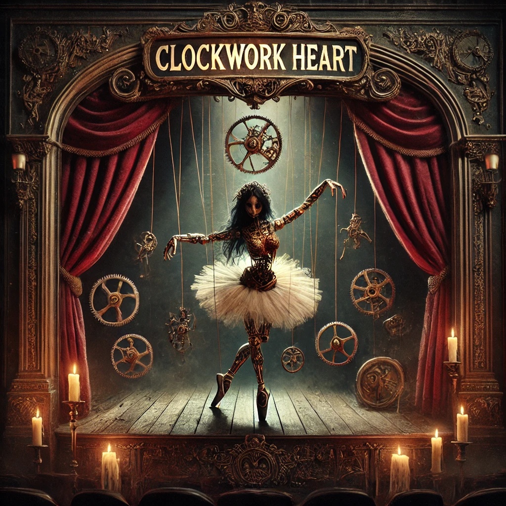 Dark symphonic metal, steampunk gothic waltz, eerie harpsichord, ghostly strings, emotional female voice, operatic vocals, wicked love, elegant, music box, twisted romance, clockwork doll, theatrical