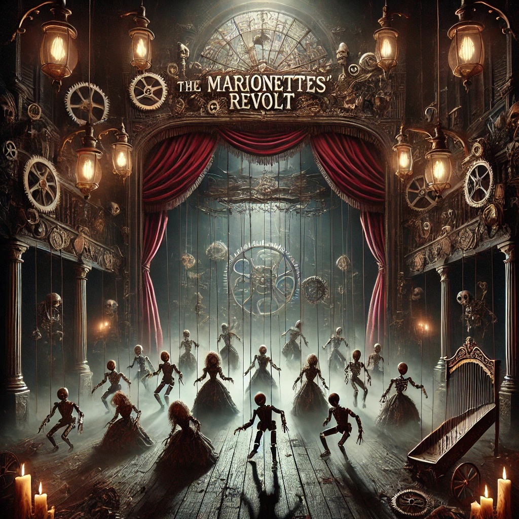 A dark, gothic symphonic metal album, where control and madness intertwine in a haunted theatre. A twisted puppet show with haunting melodies, eerie waltzes, and seductive danger.