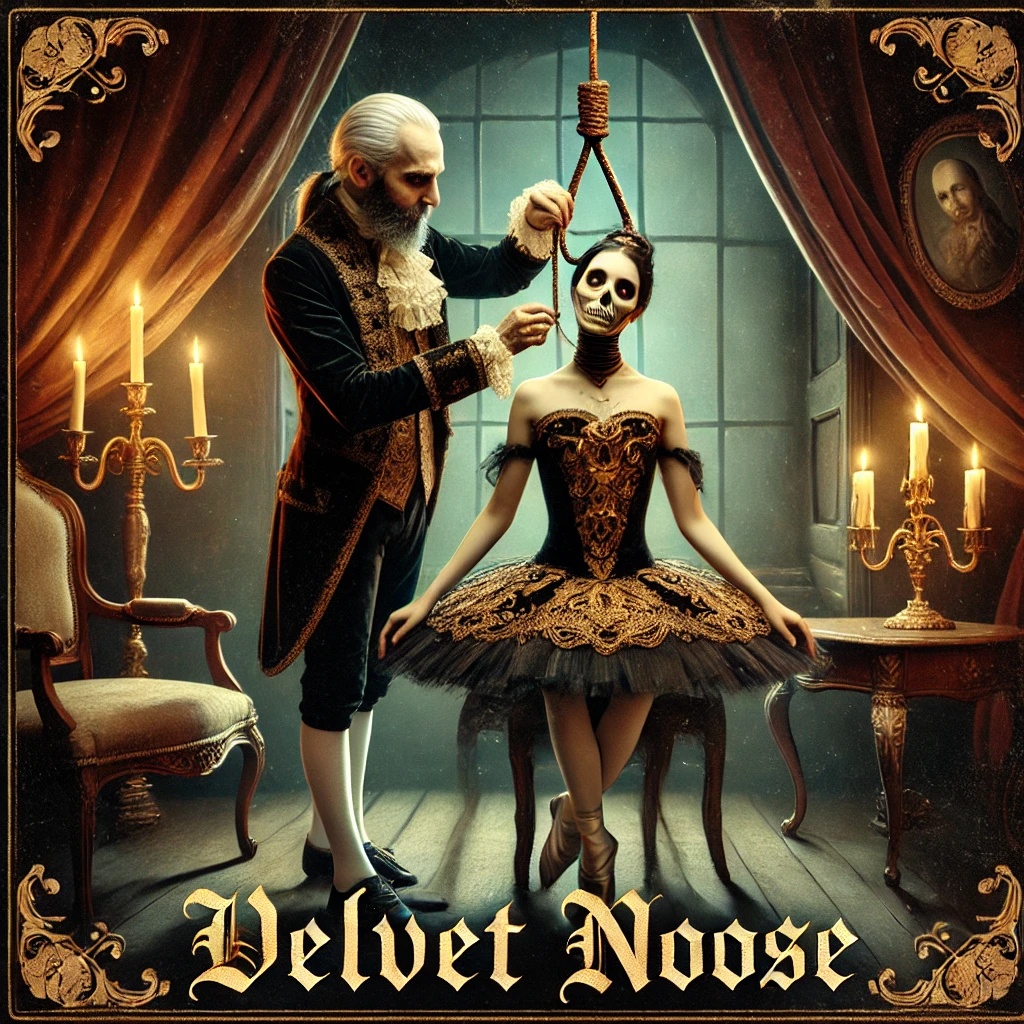 deep male voice, French accent, Dark symphonic metal, haunted waltz, eerie harpsichord, ghostly strings, slow hypnotic pacing, seductive, poetic, hypnotic, mad, gothic lullaby, theatrical, expressive, โwoman voice, โfemale voice
