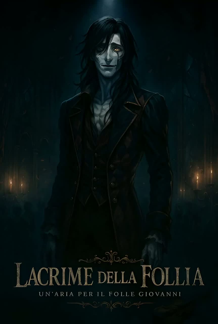 Male dramatic baritone-tenor with Italian accent crossover, Italian opera ร symphonic metal ร gothic neoclassical ร darkwave, tempo 70 โ 120 BPM, key D minor โ Eโญ Phrygian, theatrical delivery, emotional, expressive, cinematic anthem, Italian accent, studio-quality clarity, impeccable diction and articulation so every word is intelligible, legato phrasing with controlled vibrato, wide dynamics ppโffโpp, rubato expression, phrasing human and raw, resonance chest โ head mix, forward mask tone, orchestra of tremolo strings, pipe organ, harp harmonics, ghost choir, timpani rolls, clean and distorted guitars with darkwave pulse, atmospheric reverb and metallic percussive accents, expressive breathing and theatrical projection, voice full of pain, madness, and lucidity, diction crisp, vowels open and warm, consonants sharp, delivery alternates lyrical lament and manic aria, ending in morendo fade, overall tone tragic, psychological, haunting, sacred yet broken