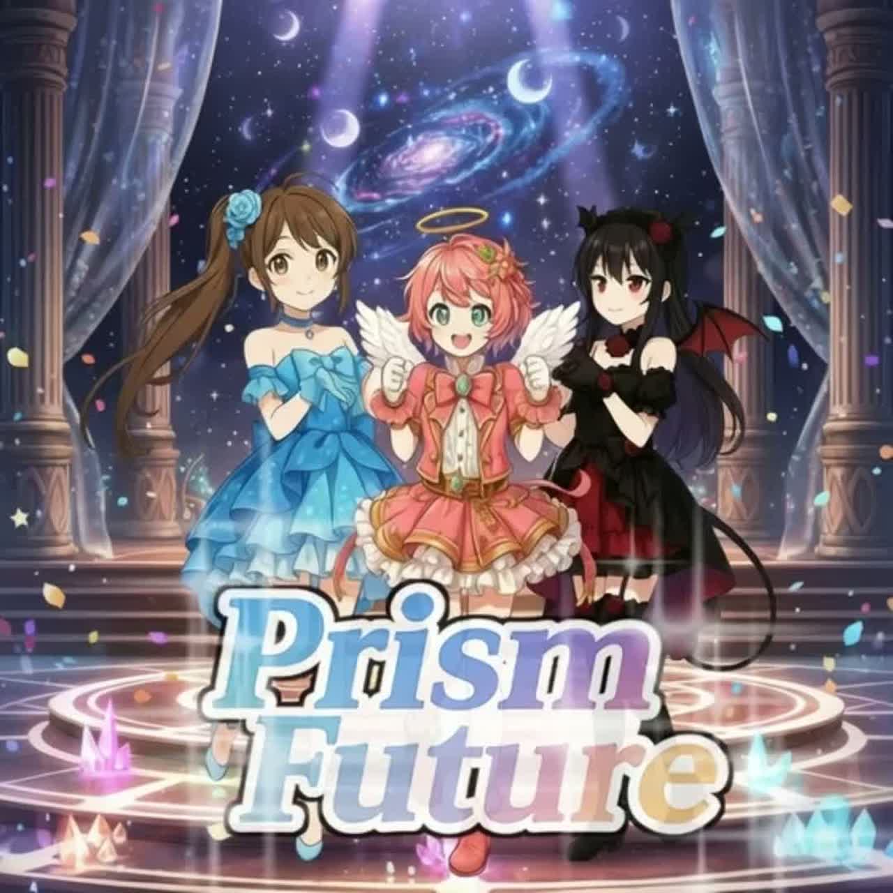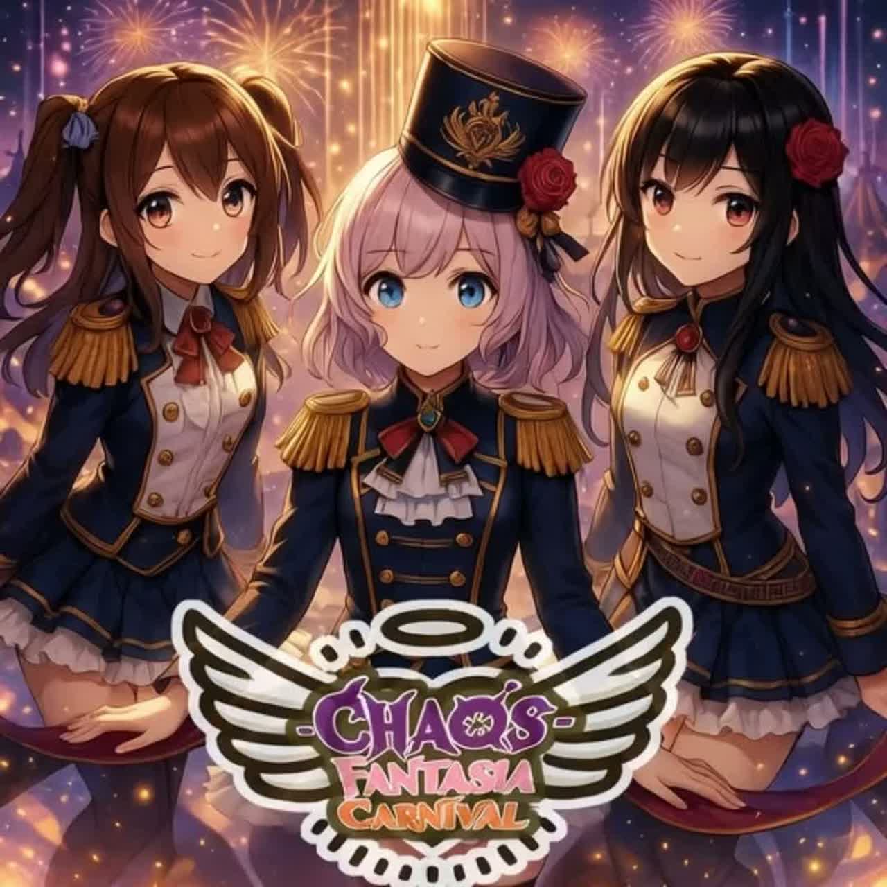 3female voices, trio, together, chorus, harmony, teenage voice, lovely, anime song, moe, eurobeat, fast tempo, kawaii
