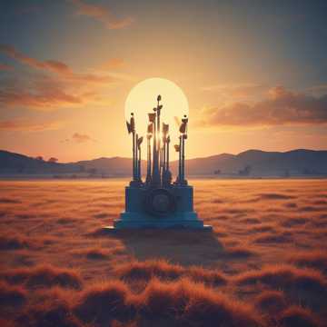 Ancient Chinese themed, orchestra, harps, brooding atmosphere, acapellas, bilingual English and Spanish, 9 minute song, inspired by New america