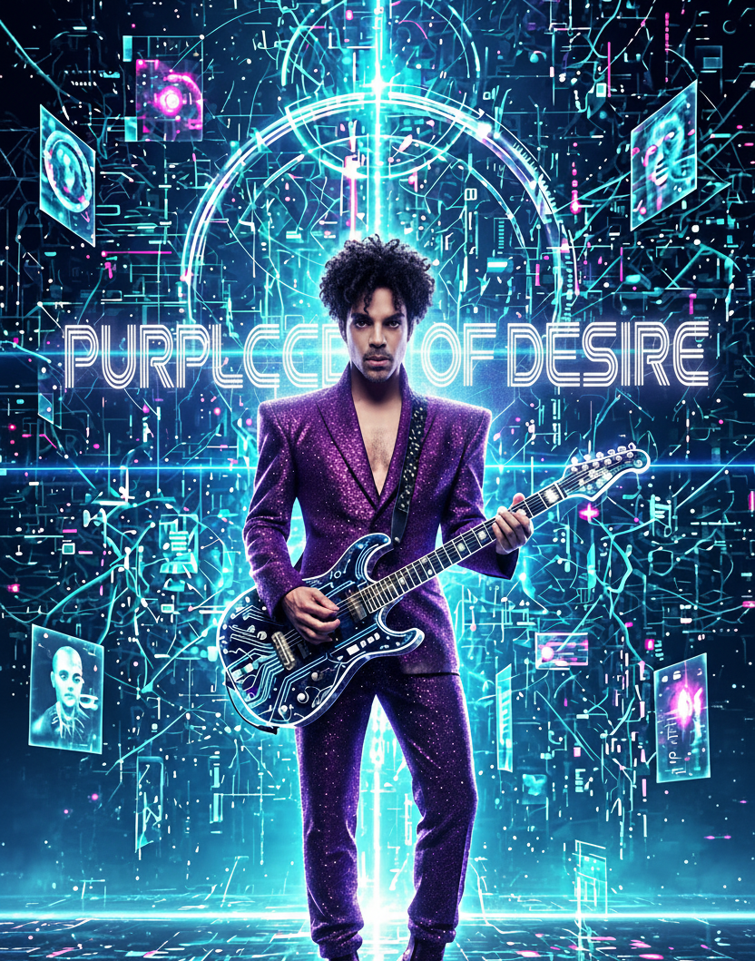 funk pop, neo funk, cyber funk, tight groove, falsetto male vocal, multi-layered harmonies, 80s analog synth + glitch elements, futuristic but soulful, sharp purple electric atmosphere, seductive and rebellious tone, AI era theme: human soul vs algorithm, crisp guitar cutting, expressive bassline, no fade, strong final chord, ‑male vocal, ‑falsetto, ‑soulful, ‑expressive, ‑seductive tone, ‑light rasp optional, ‑multi-layered harmonies