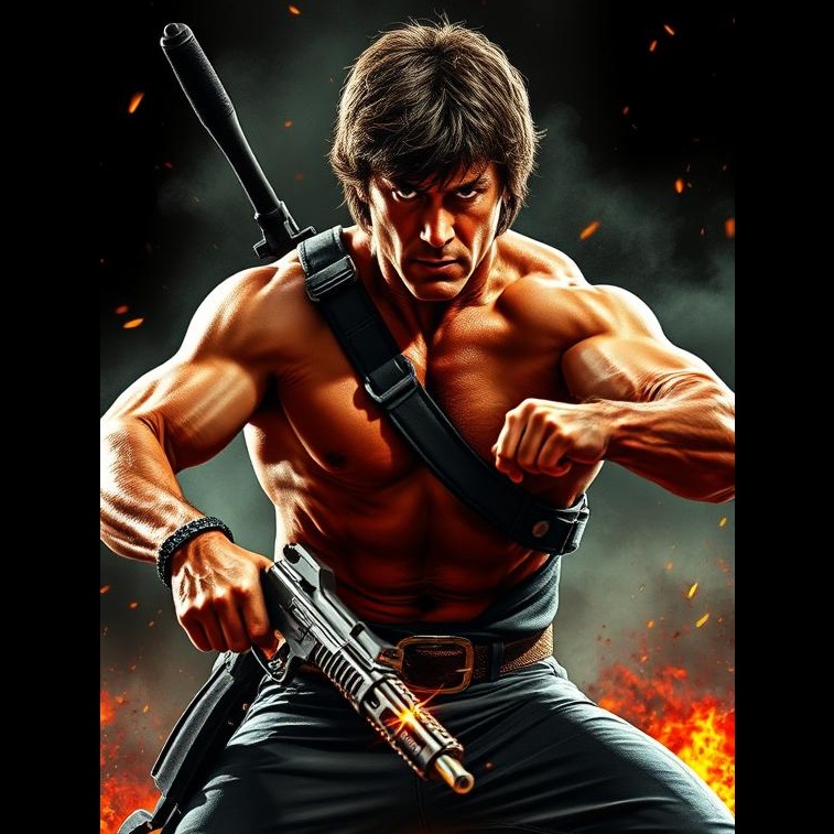 Intense military orchestral score in the style-Jerry Goldsmith's Rambo, Begin with dramatic brass fanfares and powerful percussion creating war atmosphere, Add aggressive string ostinatos, thunderous timpani, and military snare drums, Incorporate electric guitar, synthesizers, and modern electronic elements, Cinematic action theme with Vietnam War atmosphere and heroic determination, Dynamic orchestral arrangement building from tense infiltration music to full combat intensity, Sweeping strings with patriotic emotion and battle-hardened resilience, Powerful brass sections mixed with electronic beats and guitar riffs, Epic military soundtrack capturing survival instinct and warrior spirit, Rich orchestral textures blending classical scoring with 80s electronic music, Inspirational and intense composition evoking jungle warfare, brotherhood, and redemption, Perfect for military action storytelling about veterans and combat survival, 432 Hz tuning, Dolby Atmos audiophile analog, ‑noise, ‑style