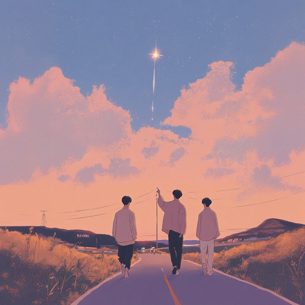 K-pop boy group, bright vocals, energetic dance beat, modern synth, catchy hooks, dynamic harmonies