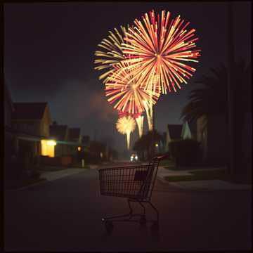 male vocal, psychedelic synthpop with indie rock textures, warbly analog synth leads, dreamy arpeggiators, fuzzed-out bass guitar, reverb-drenched falsetto vocals layered with dry spoken-word interjections, retro drum machines blended with live-sounding snares, surreal lyrics with tongue-in-cheek existentialism, lush chorus harmonies and synth modulations, unexpected chord turns and rhythmic shifts, evokes nostalgia, absurdity, and cosmic detachment, 110 bpm