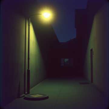 Fear of darkness and unseen watchers, Tempo 44 BPM, 4/4, low E minor with unstable intervals, Xylophone repeats sparse motifs in uneven patterns, occasionally dropping a note or shifting pitch, Bass walks slowly with subtle slides into minor seconds, hesitant like shadowed footsteps, Drums keep a soft, dragging pulse; rim clicks accentuate lurking tension, Notes decay abruptly, Feels like walking under a single flickering light with something just out of sight