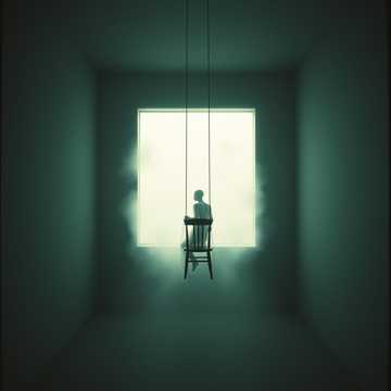 Fear of helplessness and being trapped, Tempo 41 BPM, 4/4, centered loosely around F# minor with chromatic dissonances, Xylophone plays slow rising and falling scales with one note per phrase slightly off, Bass walks in short, hesitant steps, occasionally repeating a note before moving on, Drums whisper kick pulses and soft snare brush sweeps, Long silences between phrases, The rhythm drags, creating a sensation of waiting in a confined, vertical shaft