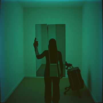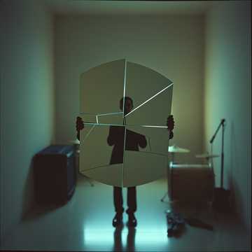 Fear of self and identity, Tempo 40 BPM, 4/4, centered around A minor with occasional clashing intervals, Xylophone plays mirrored patterns that never align fully, creating a sense of distorted reflection, Bass walks slow, alternating descending and ascending lines that avoid resolution, Drums: minimal kick, brushed snare, faint hi-hat for subtle unease, Silence dominates phrases; patterns feel like staring at something familiar but wrong, Ends unresolved, leaving listener doubting their own perception