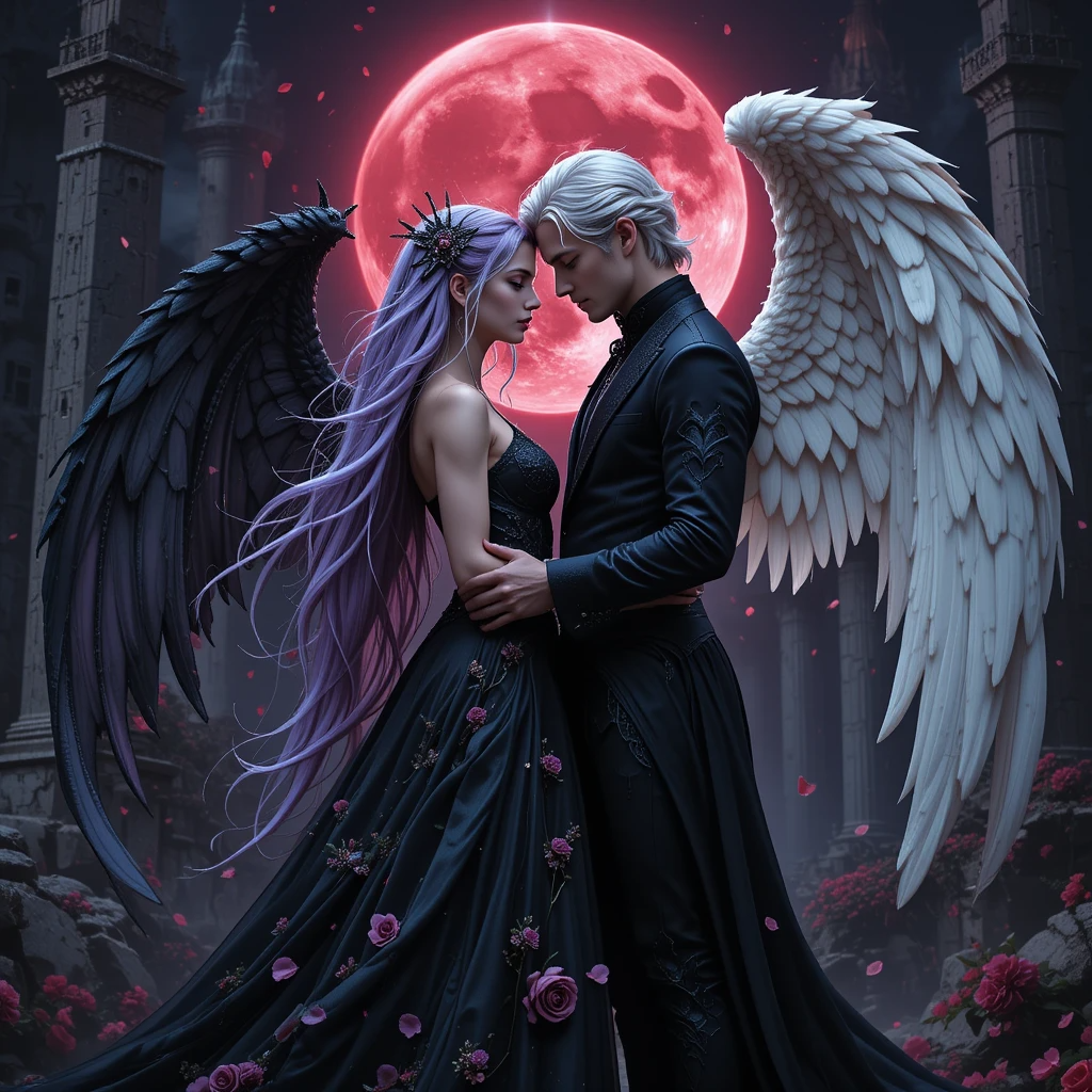 era: "modern classical, contemporary cinematic", genre: "opera, symphonic, orchestral, gothic", style: "dramatic and emotional, blending Latin choir, orchestral depth, cinematic ambience, and ethereal soundscapes", mood: "tragic, sacred, eternal, transcendent, romantic yet dark", tempo: "slow to moderate (60-80 BPM), fluid transitions", instrumentation: "full symphony orchestra with emphasis on strings (violins, cellos), brass (horns, trombones), harp, choir (SATB), solo soprano and tenor, church organ, cinematic percussion (taiko, timpani), ambient reverb and cathedral acoustics", vocals: "duet between dramatic female soprano and lyrical tenor, Latin and Italian phrases, emotional vibrato, powerful dynamic contrast between soft whispers and operatic climaxes", production: "epic and cinematic mastering, wide stereo field, deep reverb to simulate cathedral, crystal clarity for voices, balanced mix between orchestra and choir, high fi