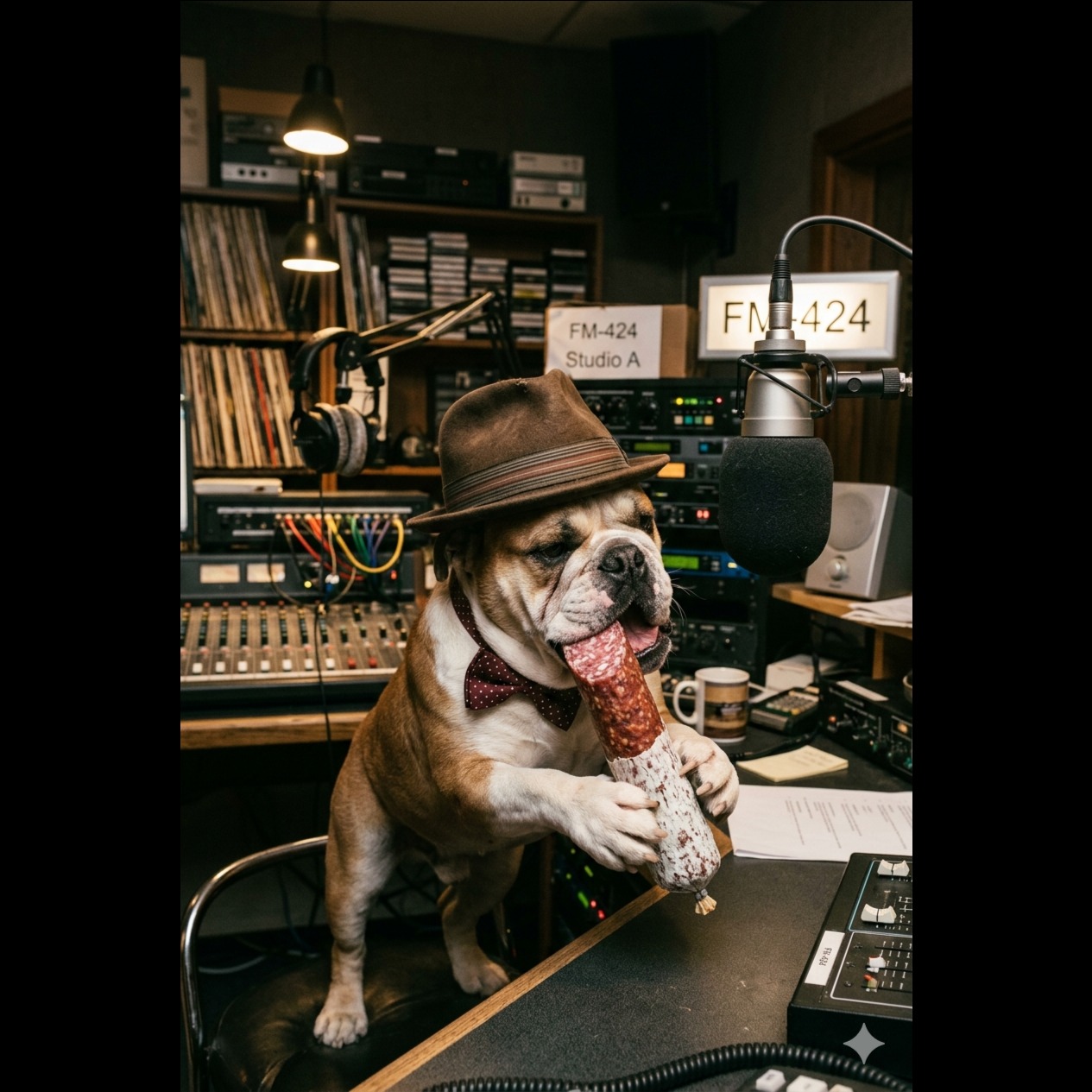 Japanese Spoken Word, Japanese Quiet Rap, Rockabilly, All Spoken, Major, 152BPM, Ultra Low Growl Bass Male Vocals, Electric Guitar(Clean and twangy vintage tone, rapid surf-style picking, slight tremolo effect, bright and sharp presence), Electric Bass(Classic upright slap bass technique, rhythmic walking bassline, warm woody resonance, punchy low-end drive), Trumpet(Traditional muted jazz trumpet style, sharp staccato stabs, playful improvisational riffs, bright brassy texture), Drums(Fast-paced rockabilly swing beat, heavy rhythmic snare rimshots, shuffling hi-hat patterns, deep bass drum kick, bright ride cymbal wash), Grumpy and authoritative atmosphere, Logical but eccentric narrative delivery, Fast-paced rhythmic monologue, 850 characters goal focus, No singing, Gritty radio DJ performance style, Rhythmic spoken delivery, Raucous but controlled musical background