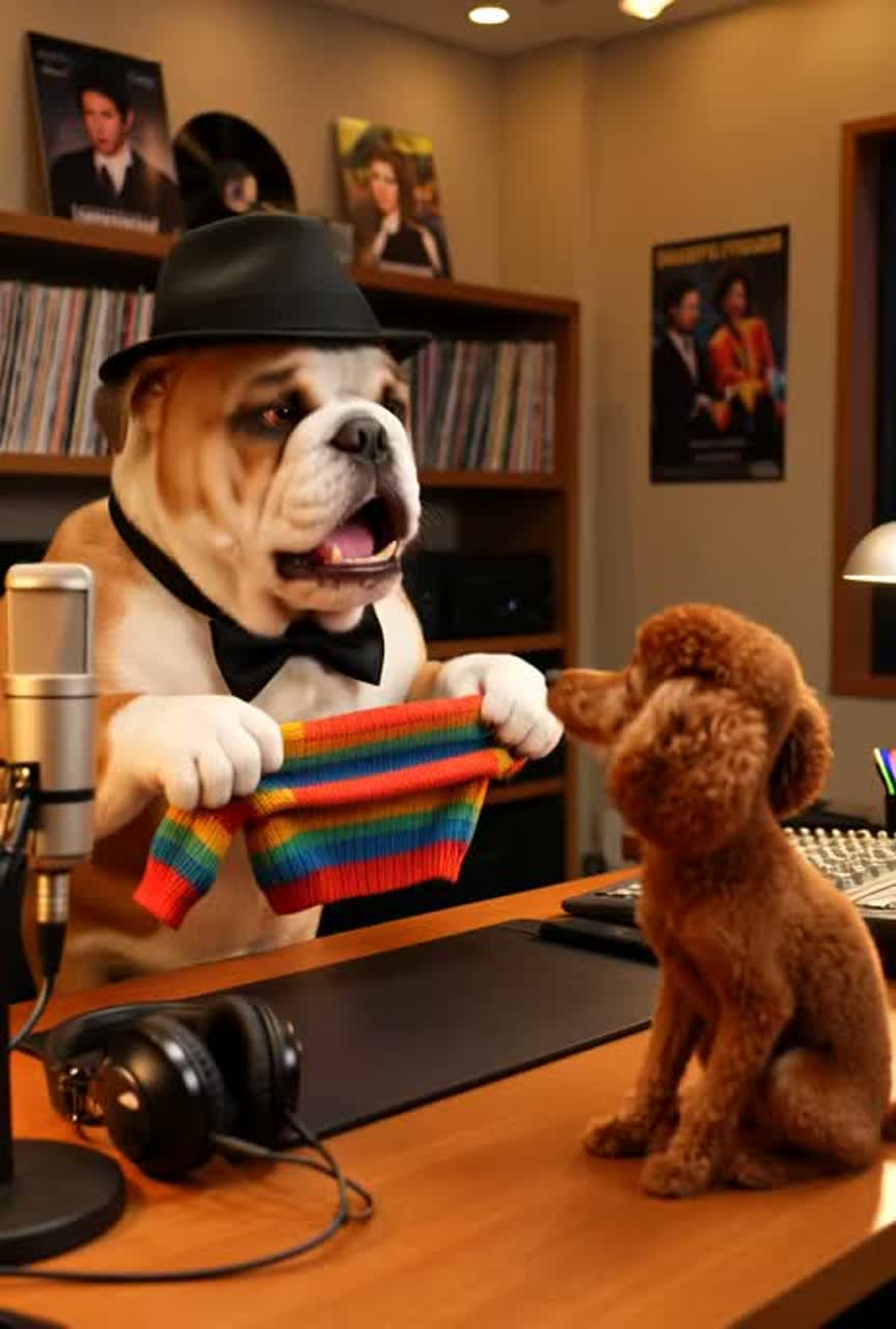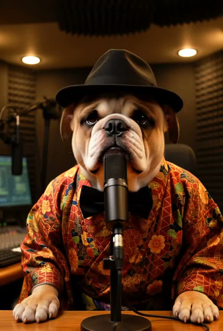 Japanese Spoken Word, Quiet Rap, Tropical House, All Spoken Dialogue, Major, 118BPM, Ultra-low growl bass vocal, Vibraphone(mallets), Synthesizer(pad), Synth Pad(ambient layer), Electric Guitar(clean fingerpicking), Electric Bass(slap), Drums(brush kit), Kansai-dialect radio DJ monologue about the absurdly oversized pet industry, dog clothes, organic pet food, birthday cakes for dogs, and the host's own helpless surrender to his pet despite constant grumbling, ending with a rueful admission that this irrational love is its own kind of logic