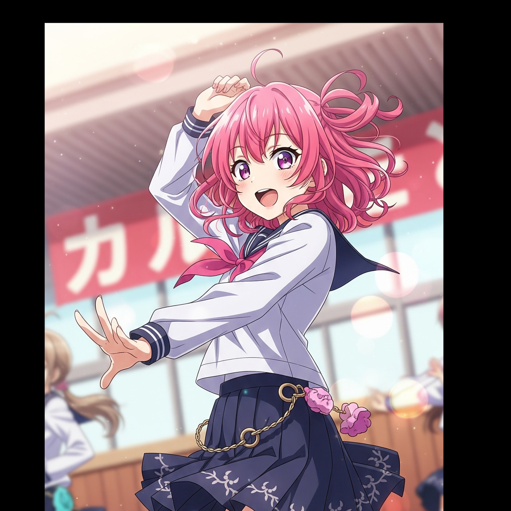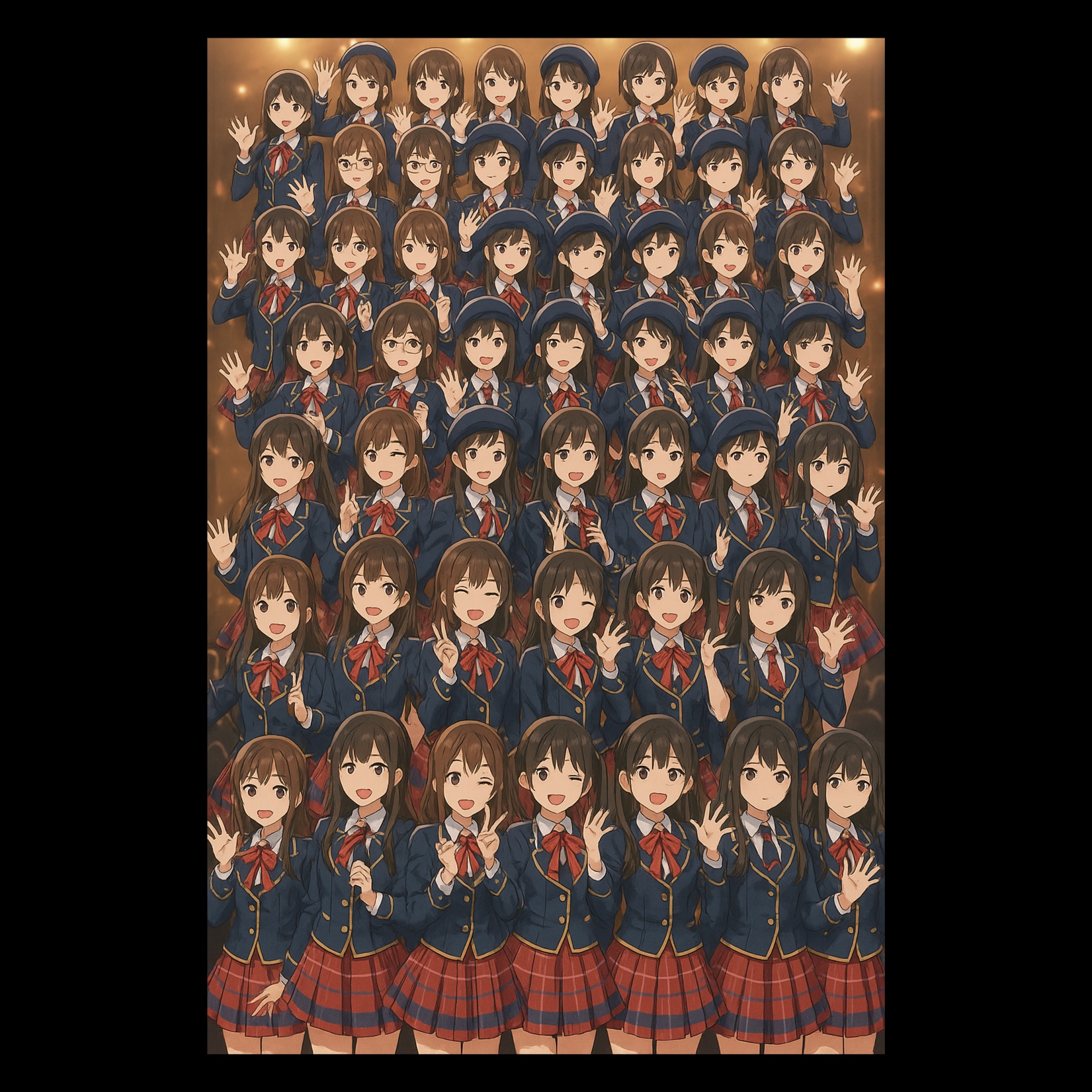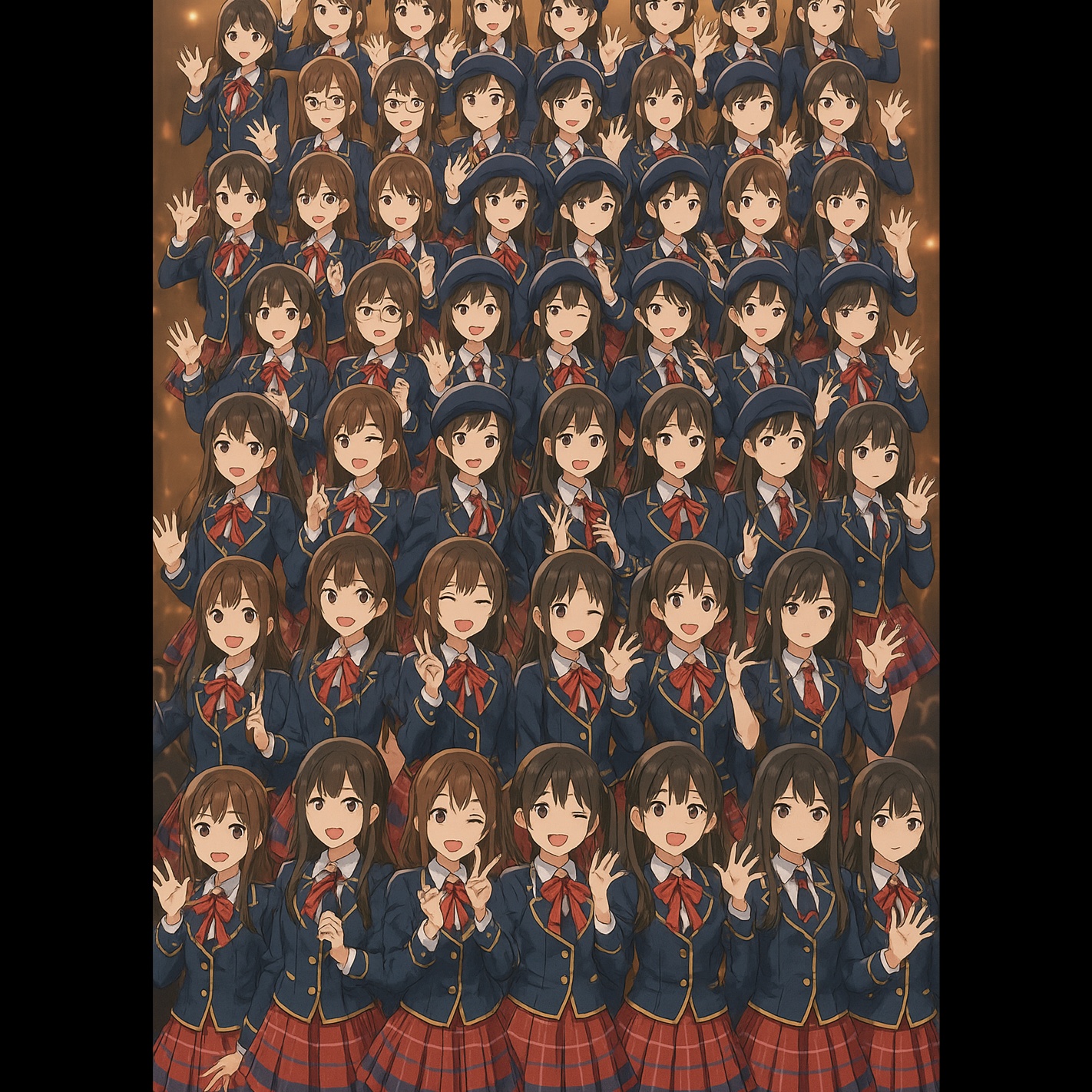 Bright and energetic J-Pop idol song in the style of like48, with cheerful female group vocals, catchy chorus, and themes of friendship and youth, BPM 130, electronic synths, upbeat drums, and cute, playful vibe