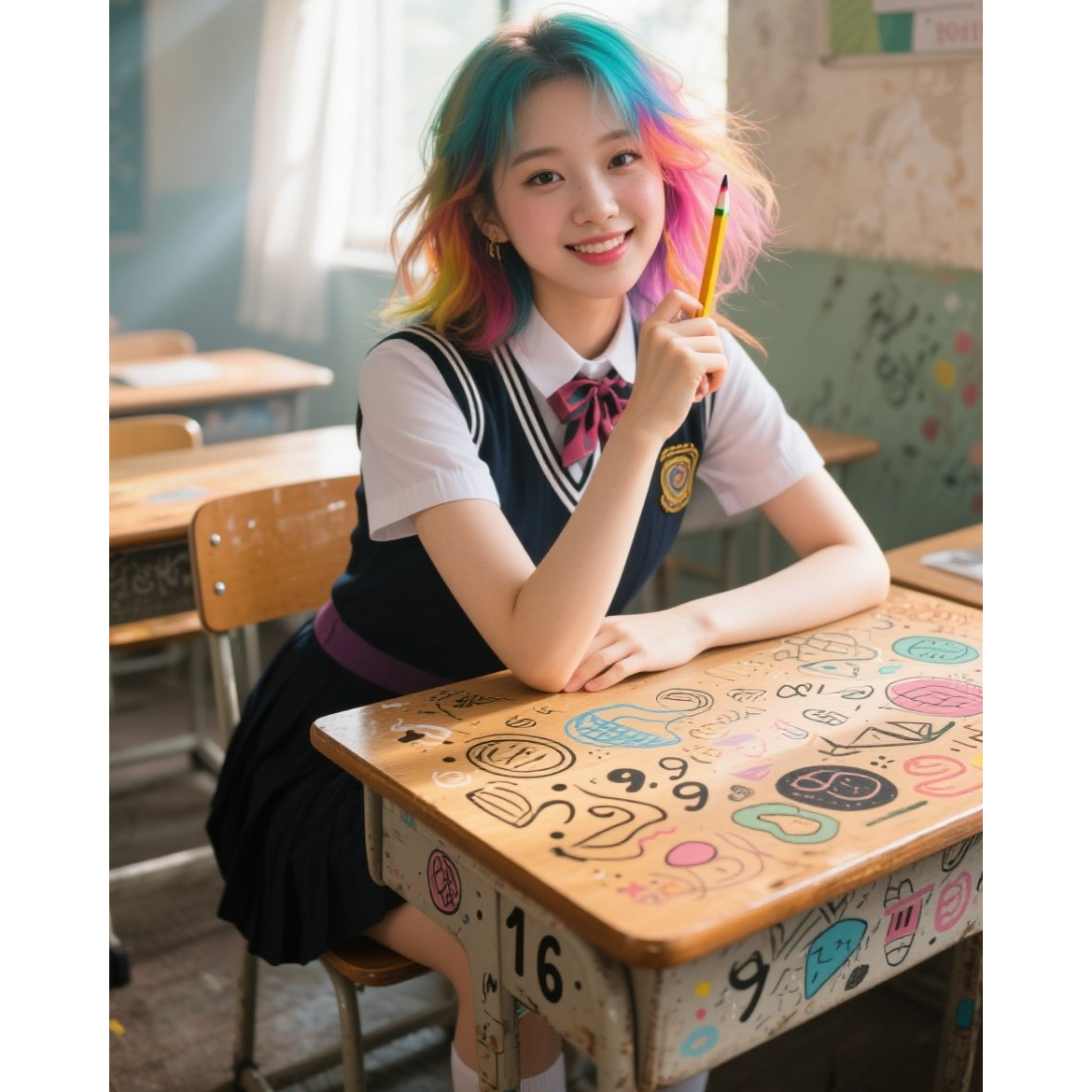 Prompt: Melodic K-pop Pop-Rock, moderate tempo 104 BPM, Key D Major, Focused on clear vocal articulation, The song features a bright acoustic piano and melodic electric guitar lines that fill the gaps between vocal phrases, The chorus is anthemic and is immediately followed by an edgy, high-energy synth or guitar hook (Post-Chorus), Includes a distinct instrumental solo section before the bridge, The rhythm is punchy but controlled to ensure lyrics are easily heard, Production is polished and radio-ready