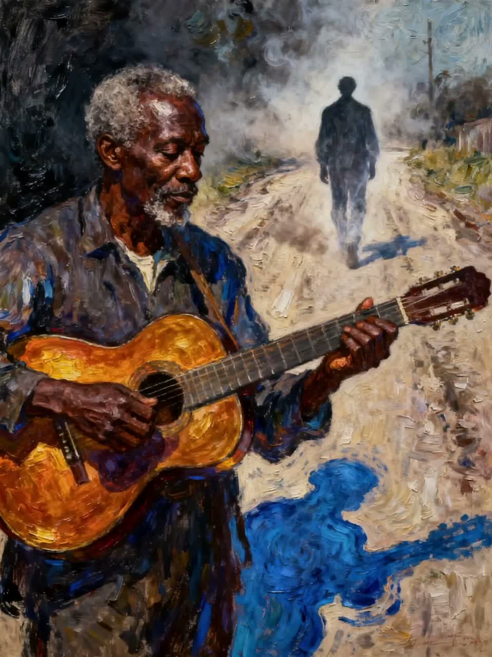 An emotional ambient soul-blues, An old darker crispy female voice, warm and vulnerable, soft emotional string orchestra, Echo on key words like «still the same» and «fades away», Ambient soul, lower keys, choir, deep blues-soul, acoustic Chicago blues Motown, dreamy grime, soft emotional string orchestra throughout the entire song, echoes and ambience