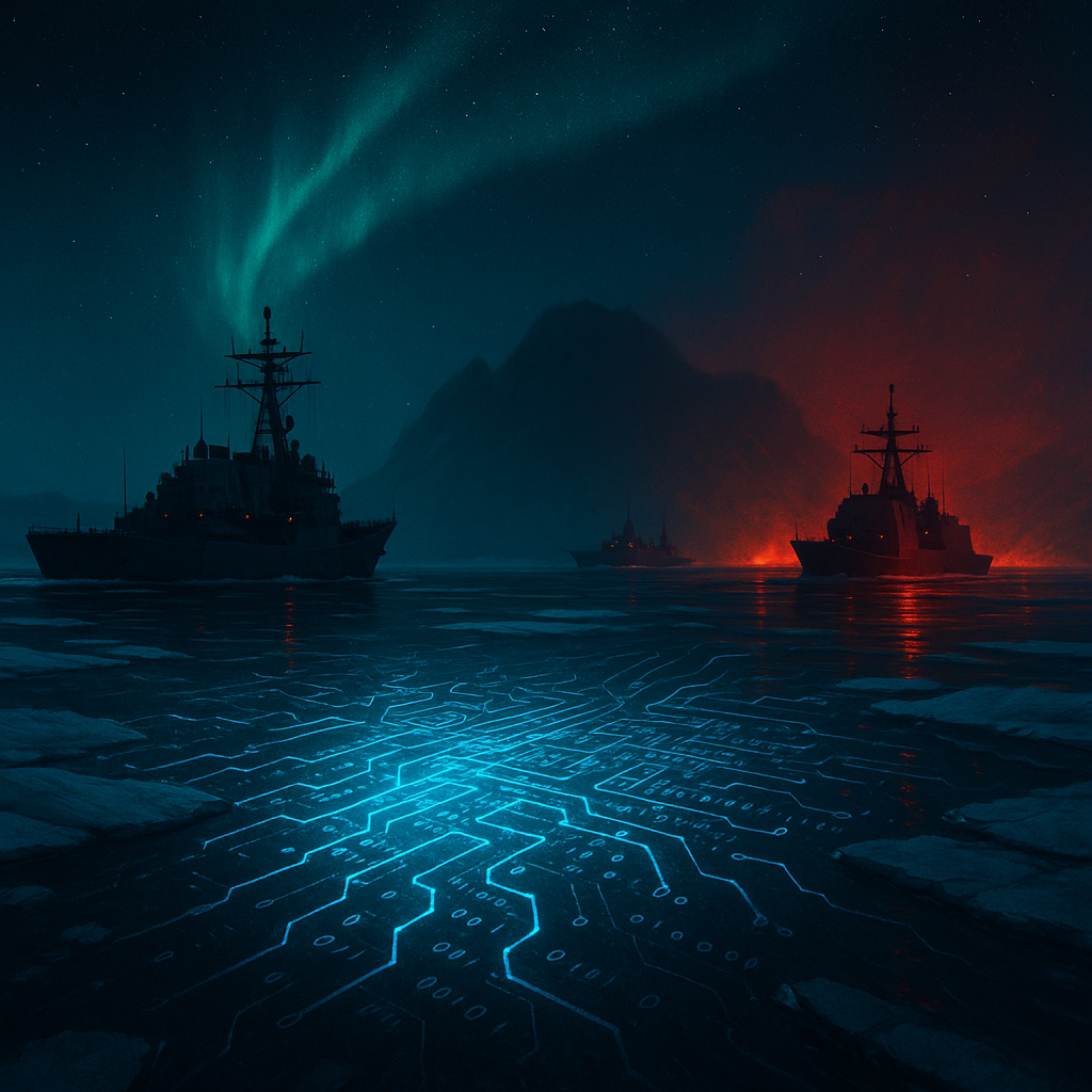 Dark cinematic synthpop with icy arctic atmosphere, Pulsing synth bass, sharp arpeggios, gated drums, and sweeping pads like frozen winds, Male vocals dramatic, with vocoder echoes in choruses, Tone: global thriller, suspenseful, urgent, with a sense of looming catastrophe