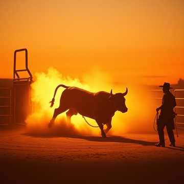 Create a fully original country and western bull-riding arena anthem titled “Rodeo Night, ” Around 132 BPM, around 3:00 total length, 6-second fade-in intro, 6-second fade-out outro, maximum loudness without clipping, This is not soft country, pretty country, feel-good country, party-country, or polite radio country, This is the sound of a vicious bull exploding out of the chute under bright lights: pure muscle, menace, testosterone, danger, dust, crowd roar, violent power, and international rodeo force, Absolute bans: no piano, no saxophone, no horns, no brass, no orchestral brass, no cinematic trailer horns, no harmonica, no fiddle lead, no playful fills, no light percussion, Core identity: authentic country and western instrumentation carrying hard-rock presence, EDM-style drop behavior, and a continuous low-frequency pressure envelope that wraps the listener instantly and attacks the senses from the first second, Opening is the highest priority, First second: instant breath-taki