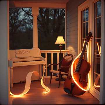 Acoustic guitar as the rhythmic spine, Piano providing harmonic architecture, Warm bass anchoring the low end, Light brushed drums and soft rim hits, Subtle pedal steel for emotional texture, Sustained, lyrical fiddle lines used sparingly (long bow strokes, no fast runs), Clean ambient electric guitar swells, Very restrained low string pads (viola/cello) for cinematic lift, Gentle background vocal harm