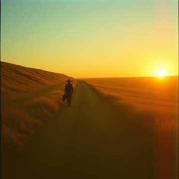 Create a country & western epic inspired by a slow-burn journey song, 70–90 BPM, 4/4, Begin intimate with fingerpicked acoustic guitar, soft pedal steel, and restrained male vocal, Gradually add bass and drums as the story unfolds, Layer Hans Zimmer–style cinematic depth: low string drones, subtle pulses, deep sub-bass, and slow-building crescendos, Final section swells into full-band power with soaring guitar/steel lines and emotional release, Spiritual, timeless, earned—not flashy
