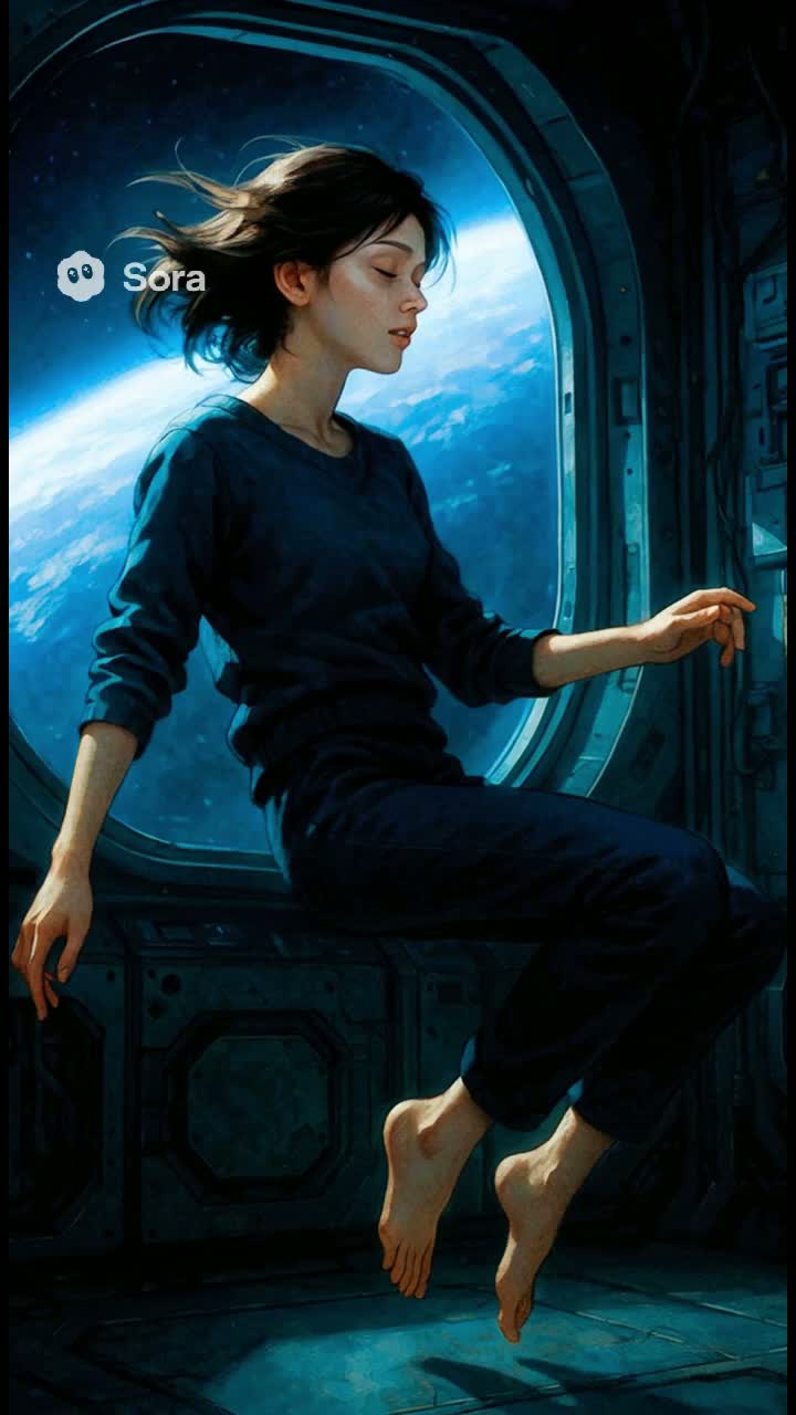 A cinematic ambient-IDM track with ethereal female vocals, inspired by the silence and solitude of orbit, The track begins with a soft, reverb-drenched guitar or piano arpeggio over deep ambient drones, evoking the feeling of drifting through zero gravity, Warm pads and distant synth swells expand gradually, creating the vastness of space within a quiet orbital station, Glitch-infused percussion and micro-beat textures emerge slowly—unpredictable, weightless, and unanchored by time, Vocals are breathy and poetic, blending Japanese and English phrases, echoing as if sung into the void, Subtle distortion, granular textures, and fading pulses rise to an emotional peak, then dissolve into silence, Modal minor harmonies and gentle dissonance convey both isolation and fragile beauty, leaving a lingering resonance as if sound itself were drifting endlessly in space, Wide stereo imaging and spacious atmospheric effects enhance the immersive, floating sensation of infinite depth