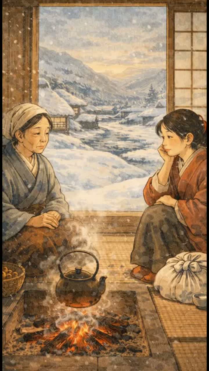 Rooted, humble, and timeless, A song born from daily life, hardship, and waiting, Cold outside, warmth inside, Sorrow is present, but hope quietly remains, ‑percussion, ‑taiko, ‑shamisen, ‑shakuhachi, ‑koto