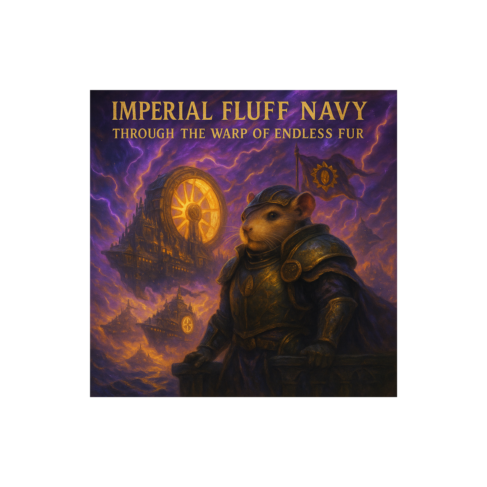 cinematic orchestra, dark cosmic choir, deep brass, eerie ambient intro, heroic resolution, grim-noble tone, Warhammer 40K spacefleet energy, Latin-chant parody, dramatic and spiritual