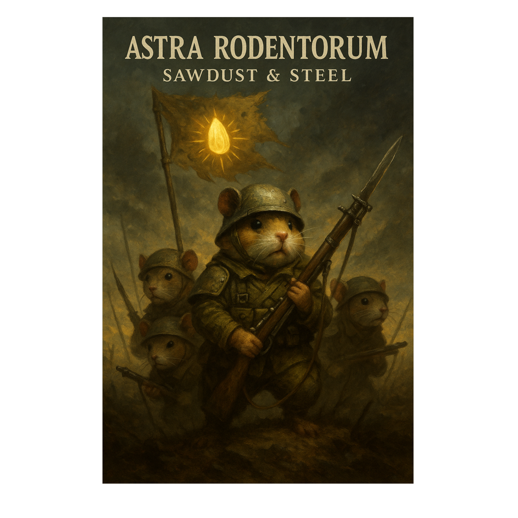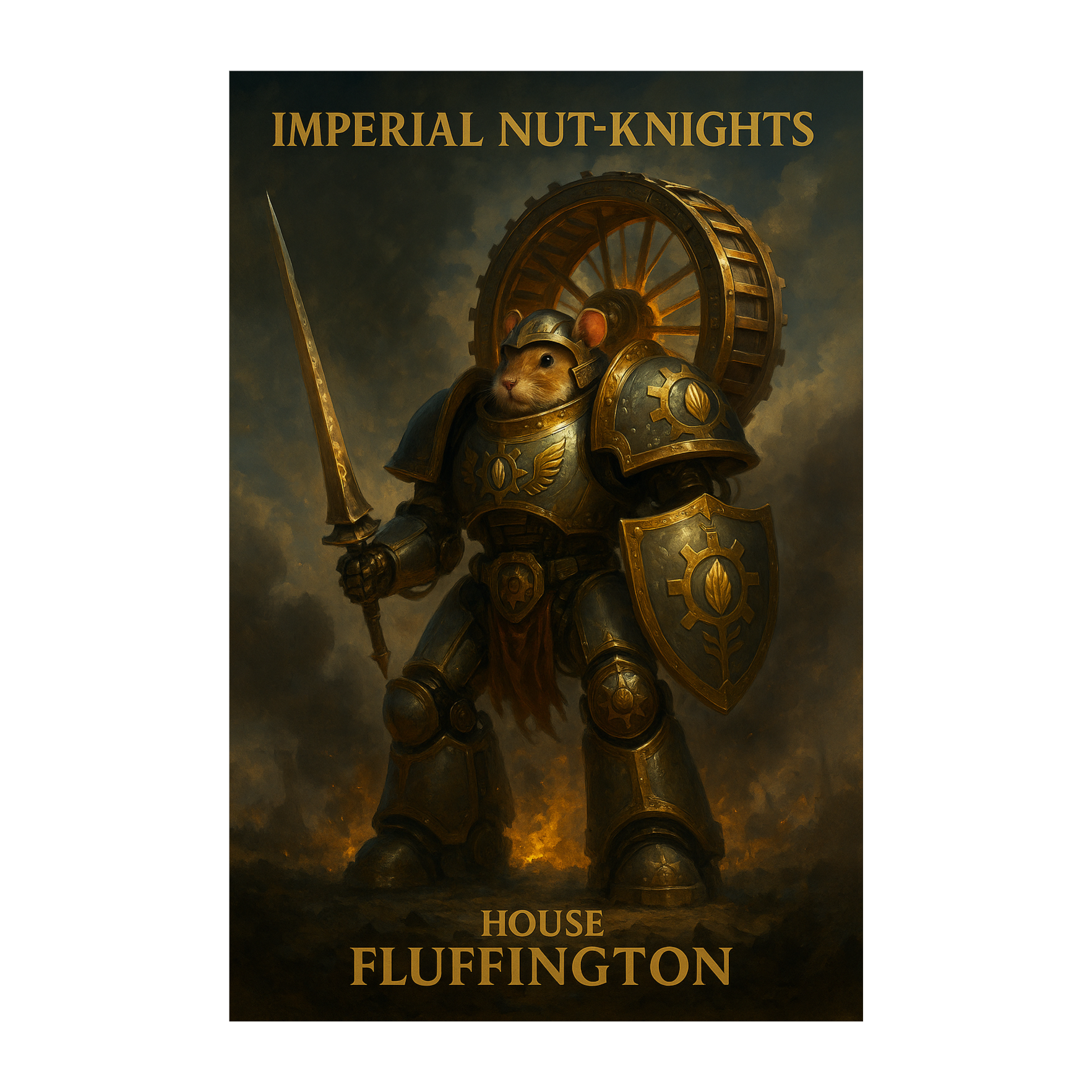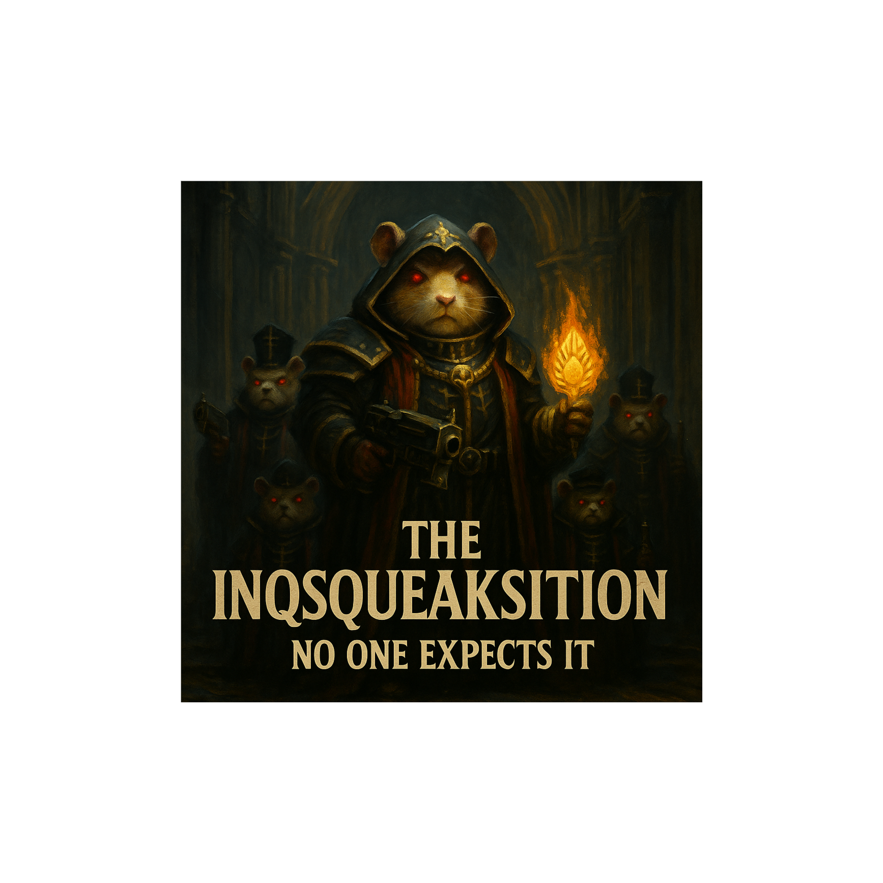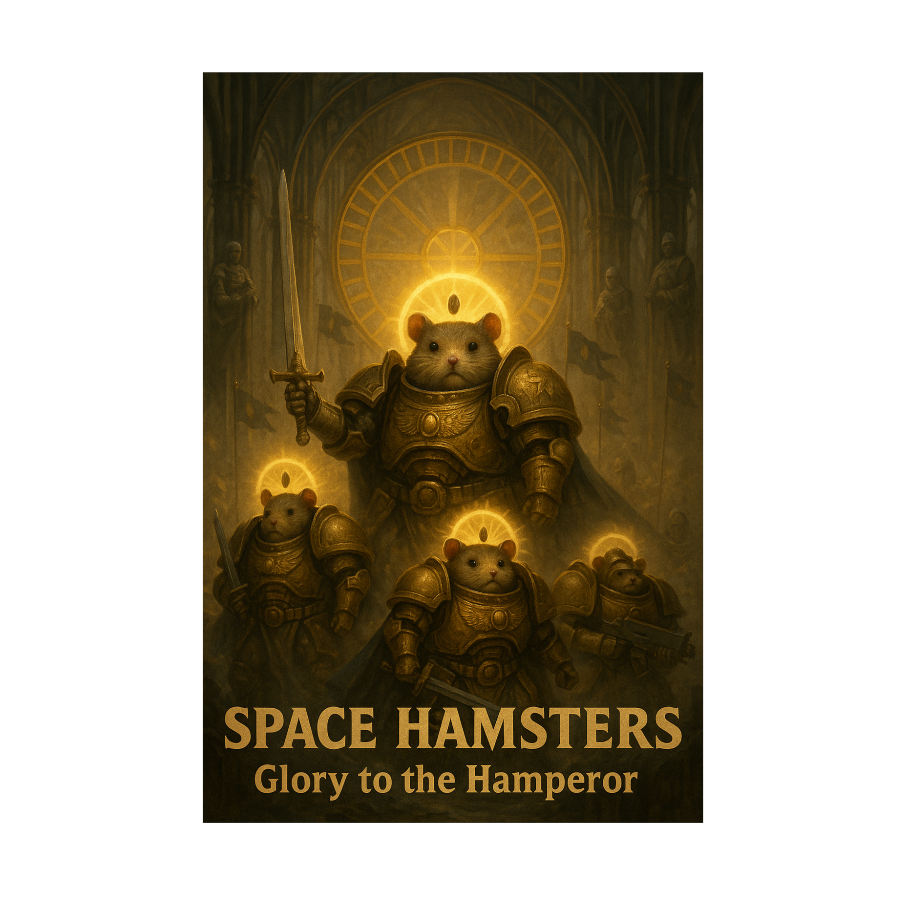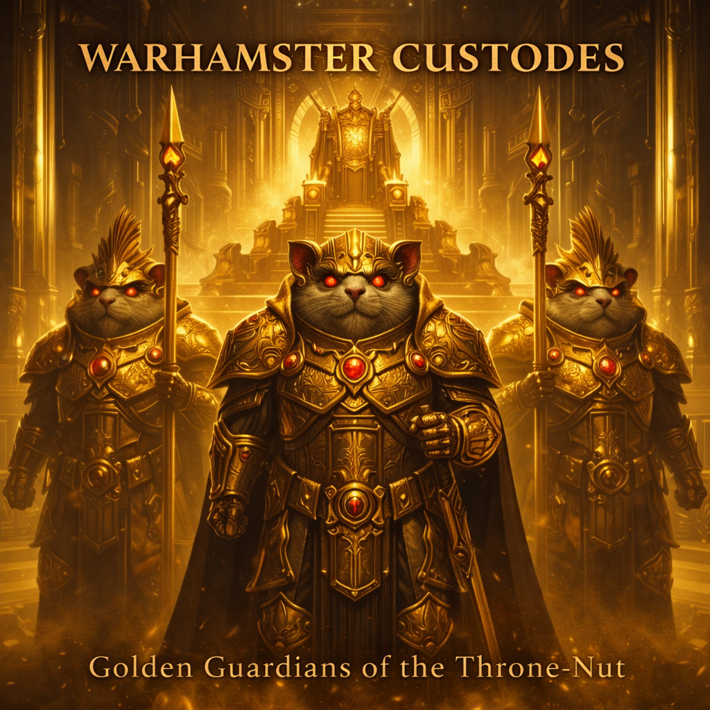 Golden hamster guardians created to protect the Throne-Nut, They do not hunger, do not squeak in fear, do not swarm, Each Custode is a perfect being of fur and gene-craft, They stand while ages crumble, They do no