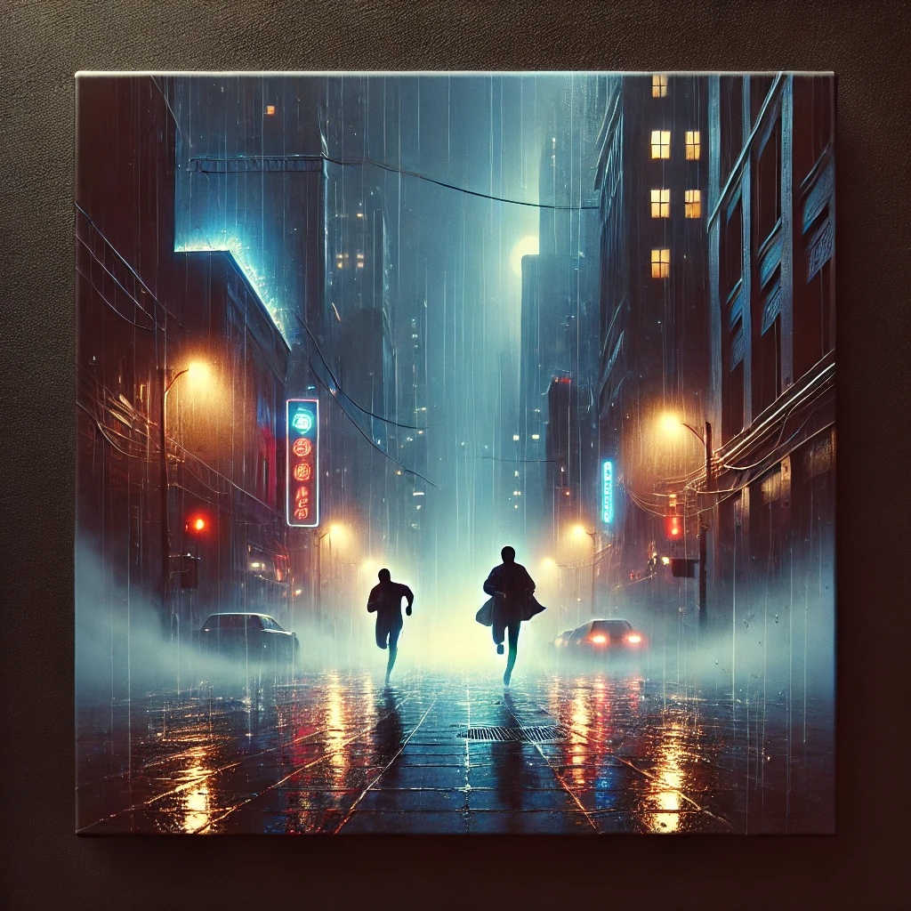 Deep 808 bass, crisp hi-hats, steady trap drums, moody synth pads, subtle guitar riffs, layered vocals with a raspy edge, atmospheric rain effects, and a balanced urban rap vibe