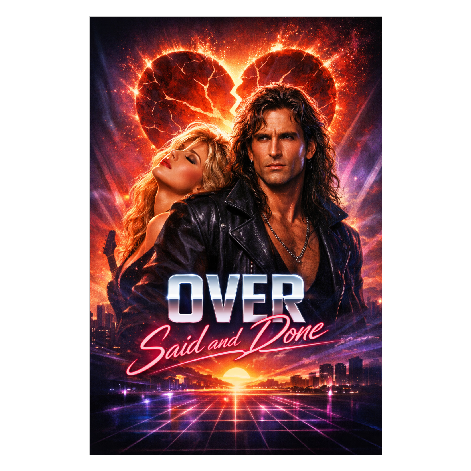 80's LA Sleaze Rock, 80's LA Glam Rock, 80's Metal, 80's LA Hair Metal, Synth Wave, Retro Wave, 80's Synth Pop, 1991 Glossy Catchy Melodic Radio Oriented Hair Metal/Arena Anthemic Pop-Rock hybrid—Swirling Fairlight CMI synth, roaring warm distorted typical late 80's hair metal wall of sound electric guitars, big synth pads, tight rhythm section, and a heart-punch chorus made for convertible-top nights and FM stereo glory and 80s Action Movies Soundtracks, Driving Uptempo Beat, Swirling Fairlight CMI and Layered Warm Crunchy Guitars that drives the song with a raspy chest belted vocals and a chorus to scream into the night in a packed arena, Sper huge Chorus with 80s Synfh Wave/Synth Pop power