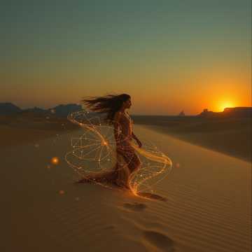 At 130 BPM, swirling wind FX and desert percussion meld with ancient drum samples to set a cinematic intro, Ethereal female vocals soar above sub bass, soaked in vast reverb, Hypnotic chants and sandstorm foley intensify toward the drop: tearout dubstep and future bass collide—crunchy modulated basslines, glitched percussion, and sharp riddim stabs drive the groove, The verse retreats to airy ambience and delicate melodic vocals, Final moments dissolve into chanting, desert winds, and textured granular noise, leaving a mystical, deeply immersive soundscape